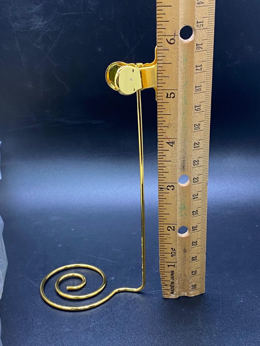 Lot of at least 12 goldtone photo or place card holders. Clip let you change the card again and again. About 6" tall.