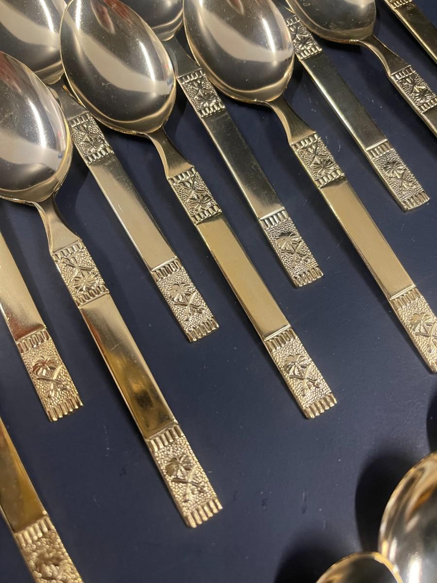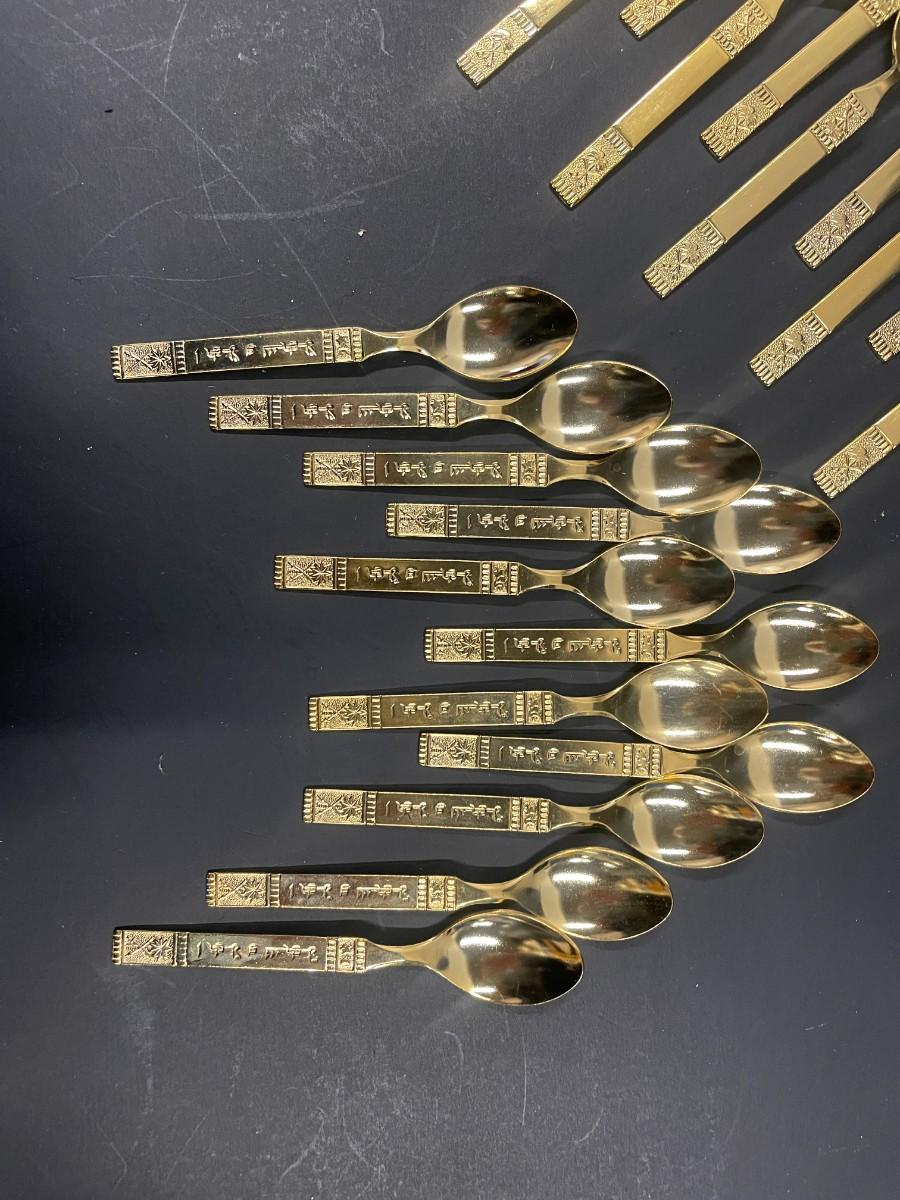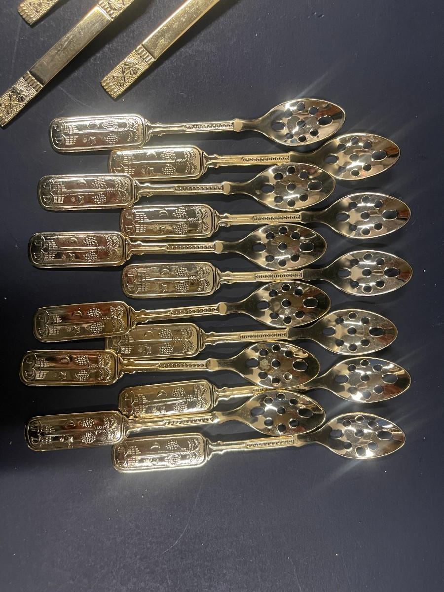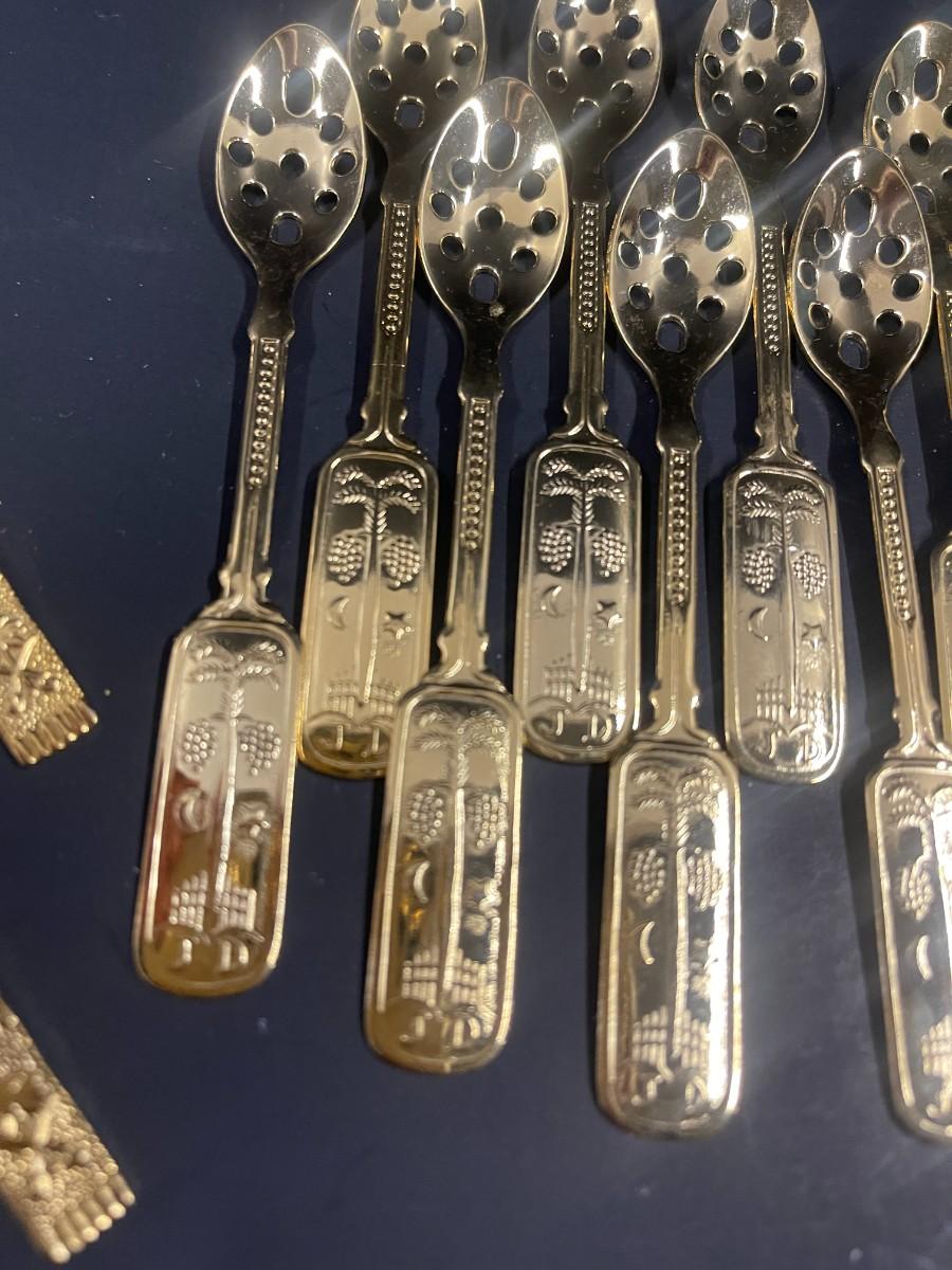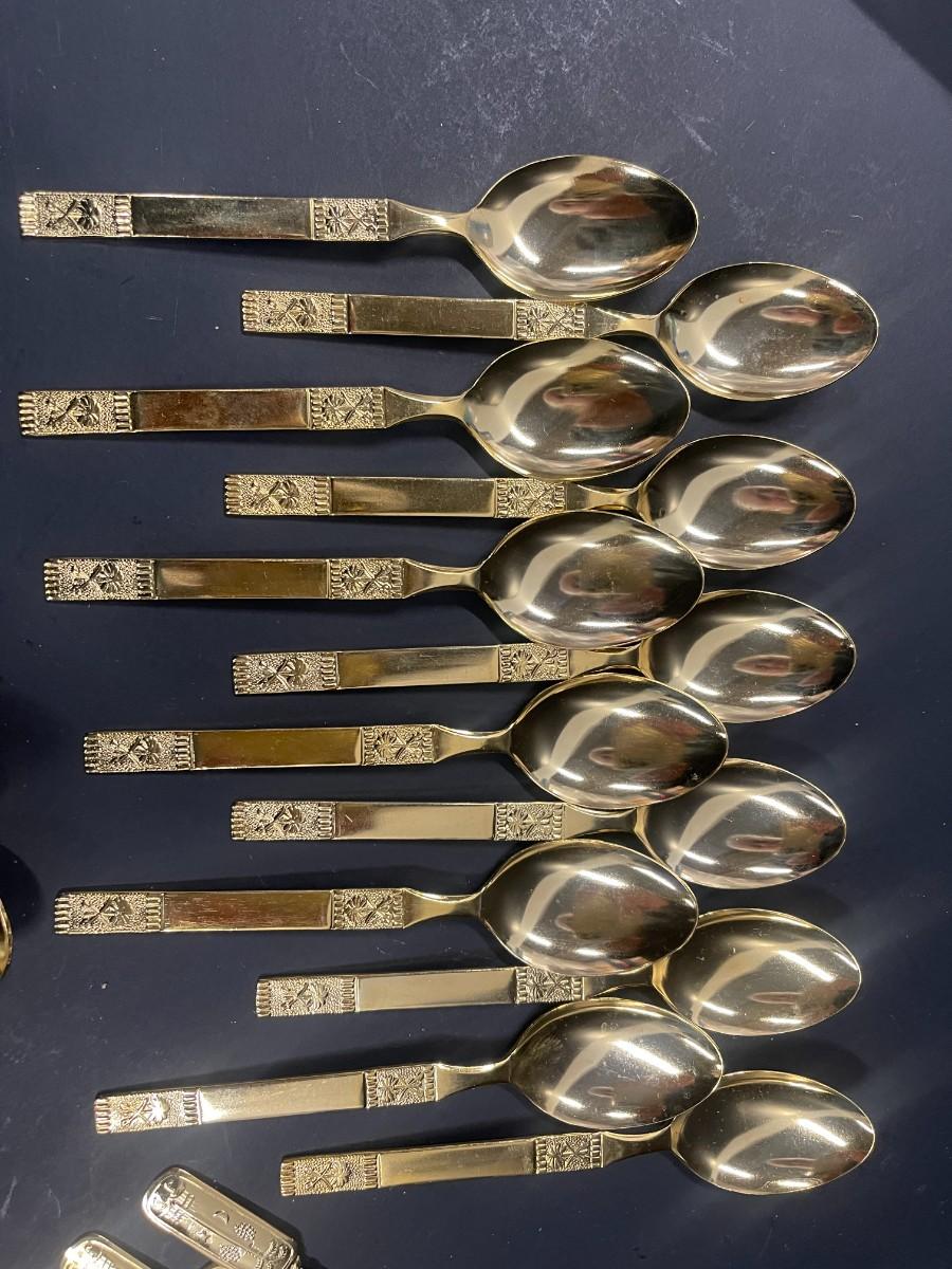 Lot of assorted gold tone teaspoons. They're super small and 3 different patterns.