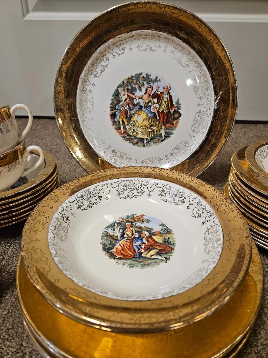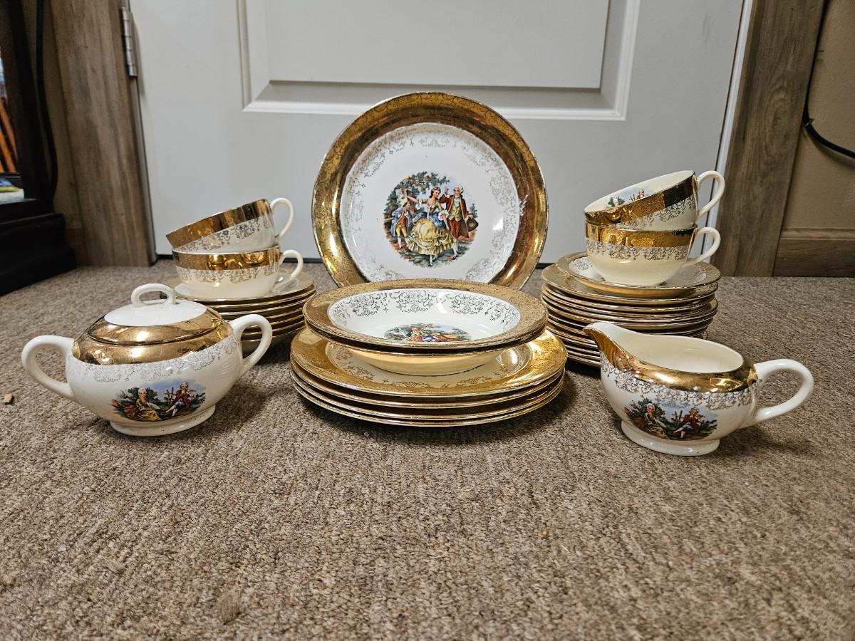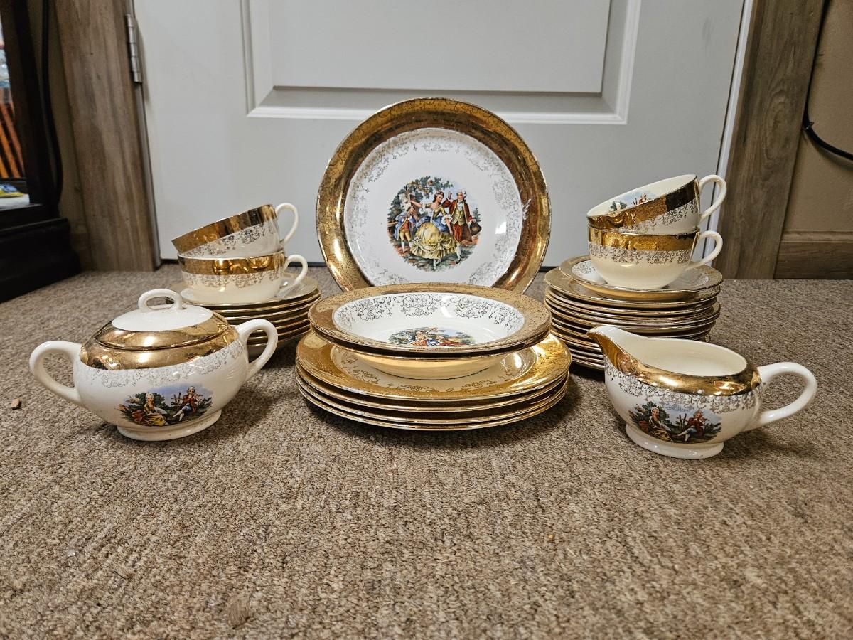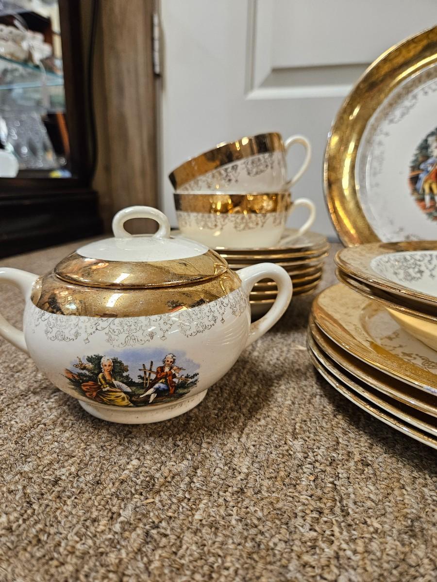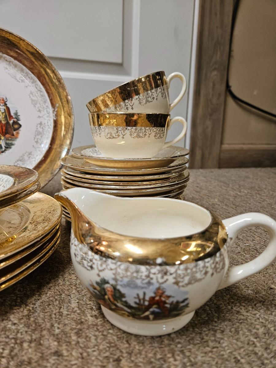 Lot of Gold Trimmed Dishes with Sugar/Creamer and Cups
