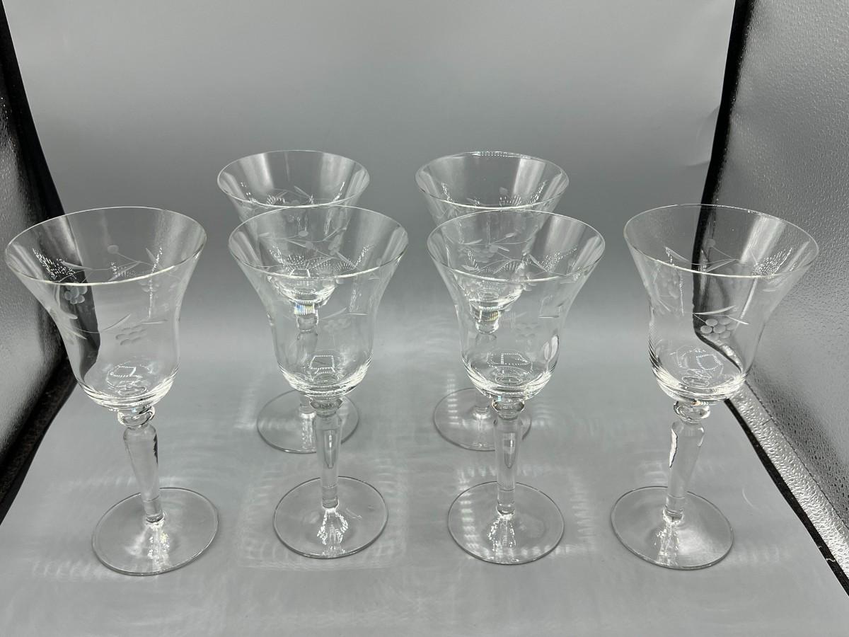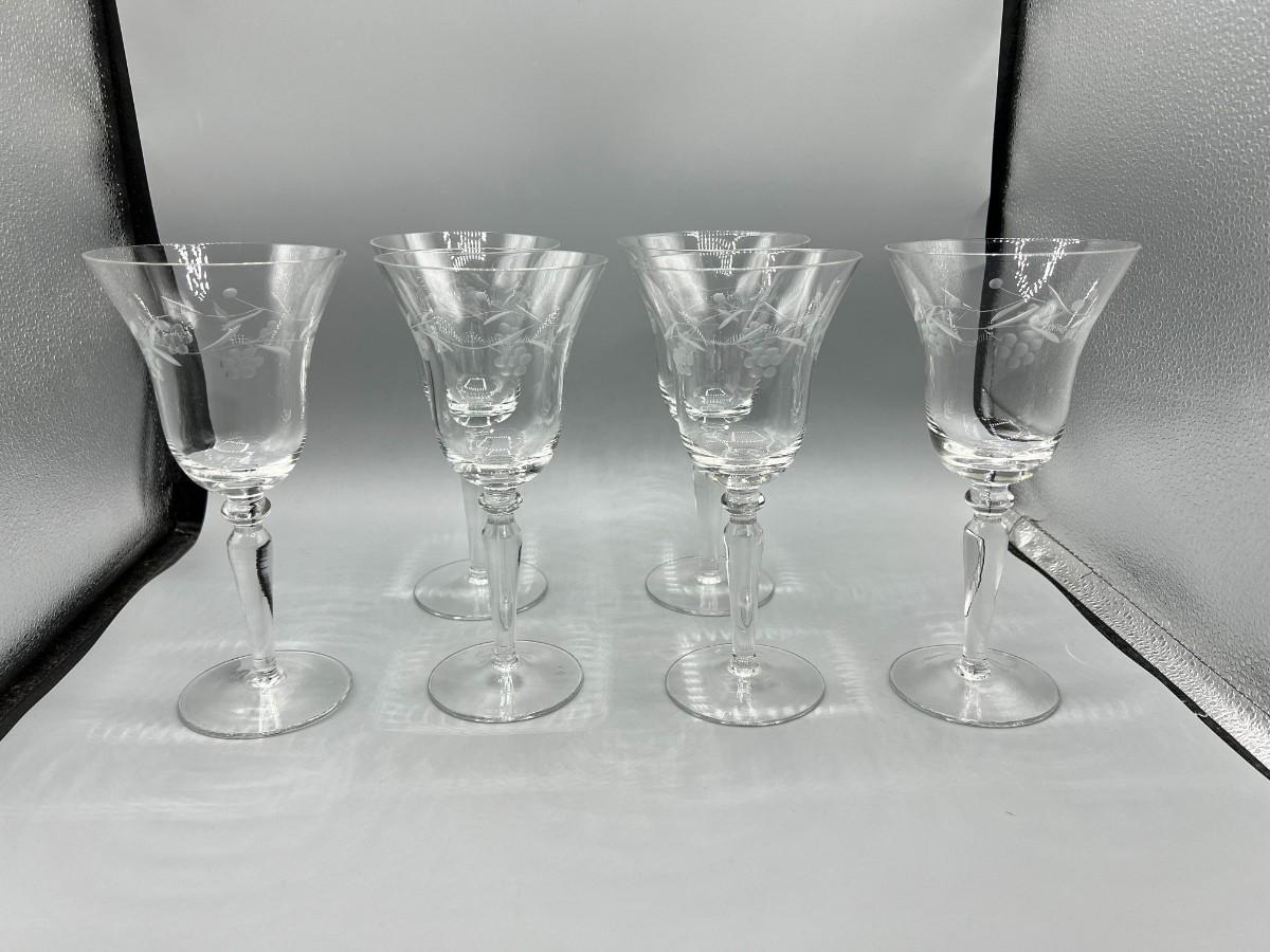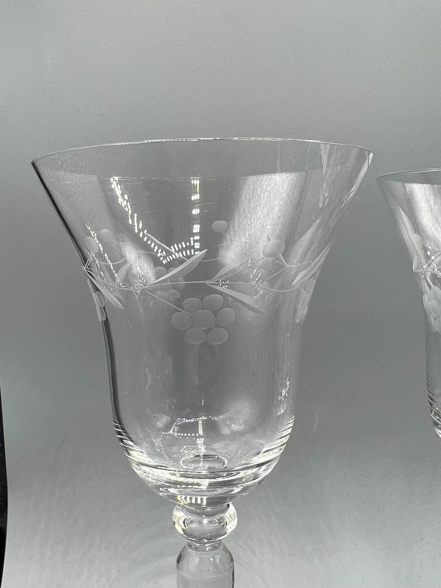 Lot of Grape Vine Etched Wine Vino Stemmed Drinking Glasses