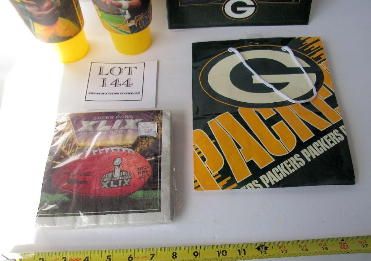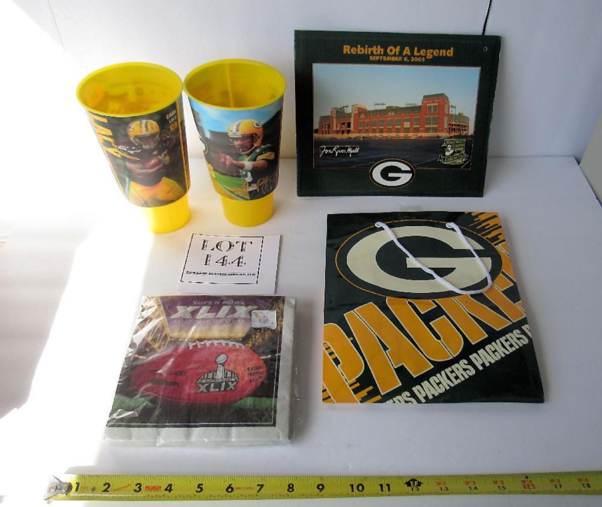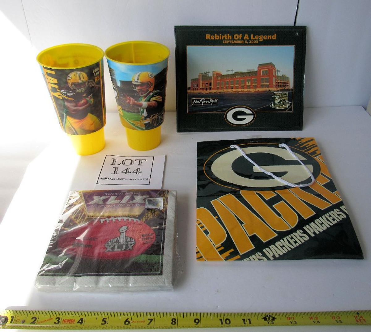 Holograpm Tumblers, Unused Napkins, Bag and Lambeau Field Information, nice shape. Shipping is available on this lot with additional shipping and handling fees. Please see our terms for details.