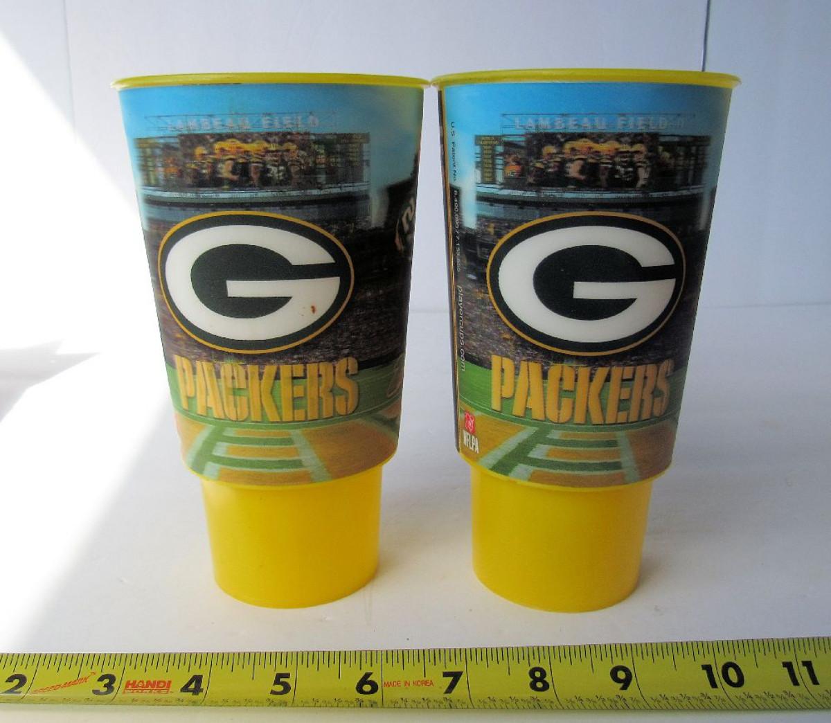 Lot of Green Bay Packers Collectibles, 2 Hologram Type Tumblers
