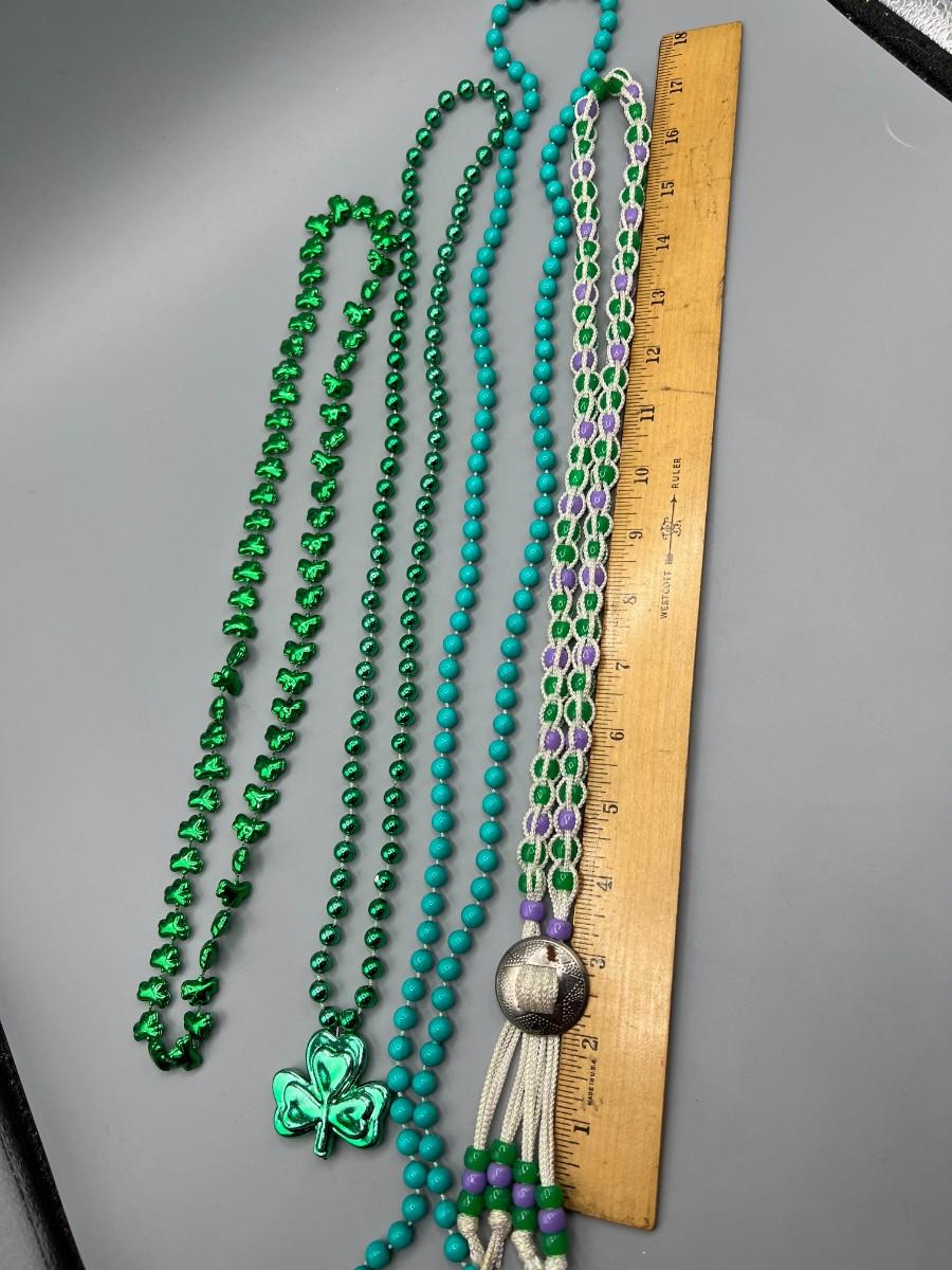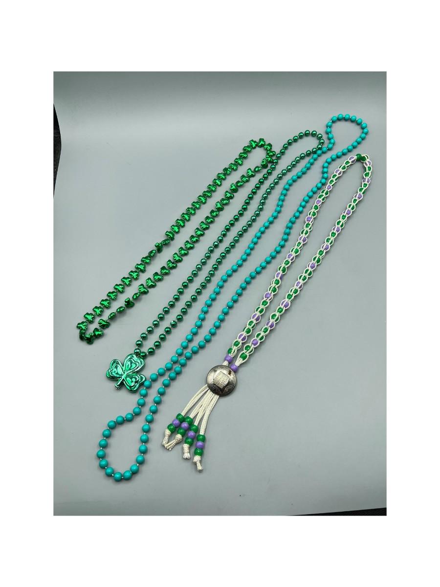 Lot of Green Beaded Costume Jewelry Fashionable Party Necklaces, there is no significant damage to the necklaces and is in good wearable condition. Check pictures for more details and for sizing.
