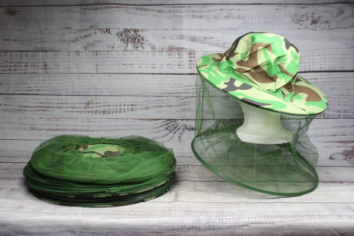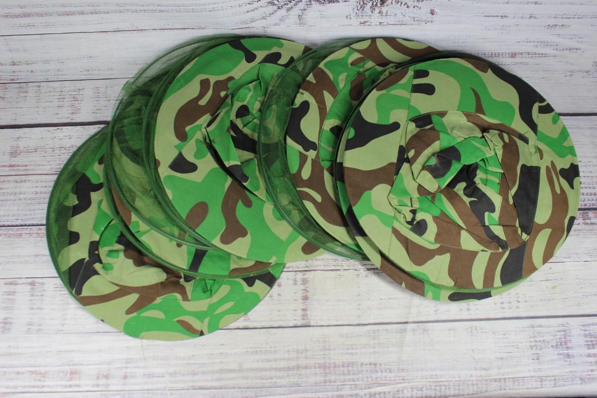 Lot of Green Camouflage Safari Sun Hats with Mosquito Bug Mesh Net