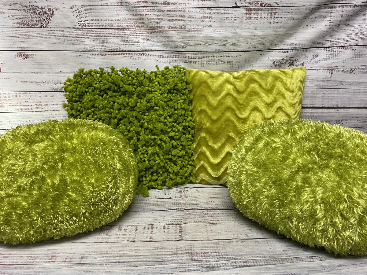 Lot of Green Fuzzy Furry Soft Pillows