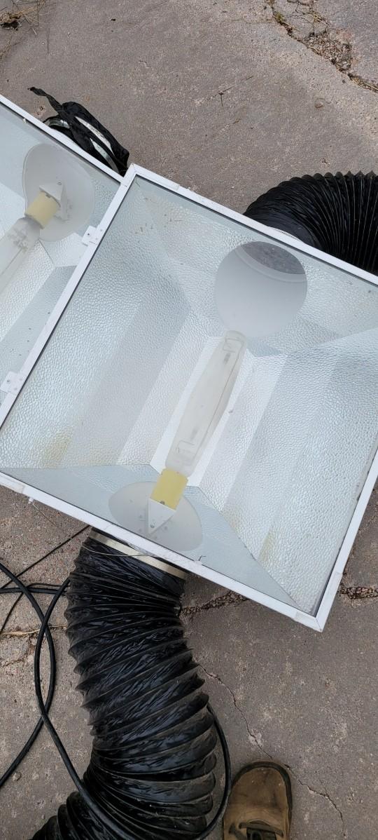 Lot of grow lights, exhaust fan, vent tube