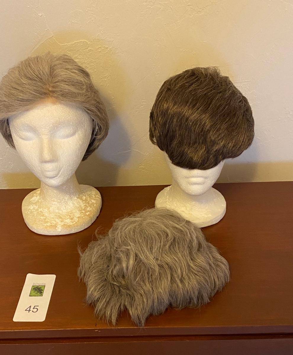 Vintage Hamilton Beach salon hair dryer. Three wigs with two foam heads