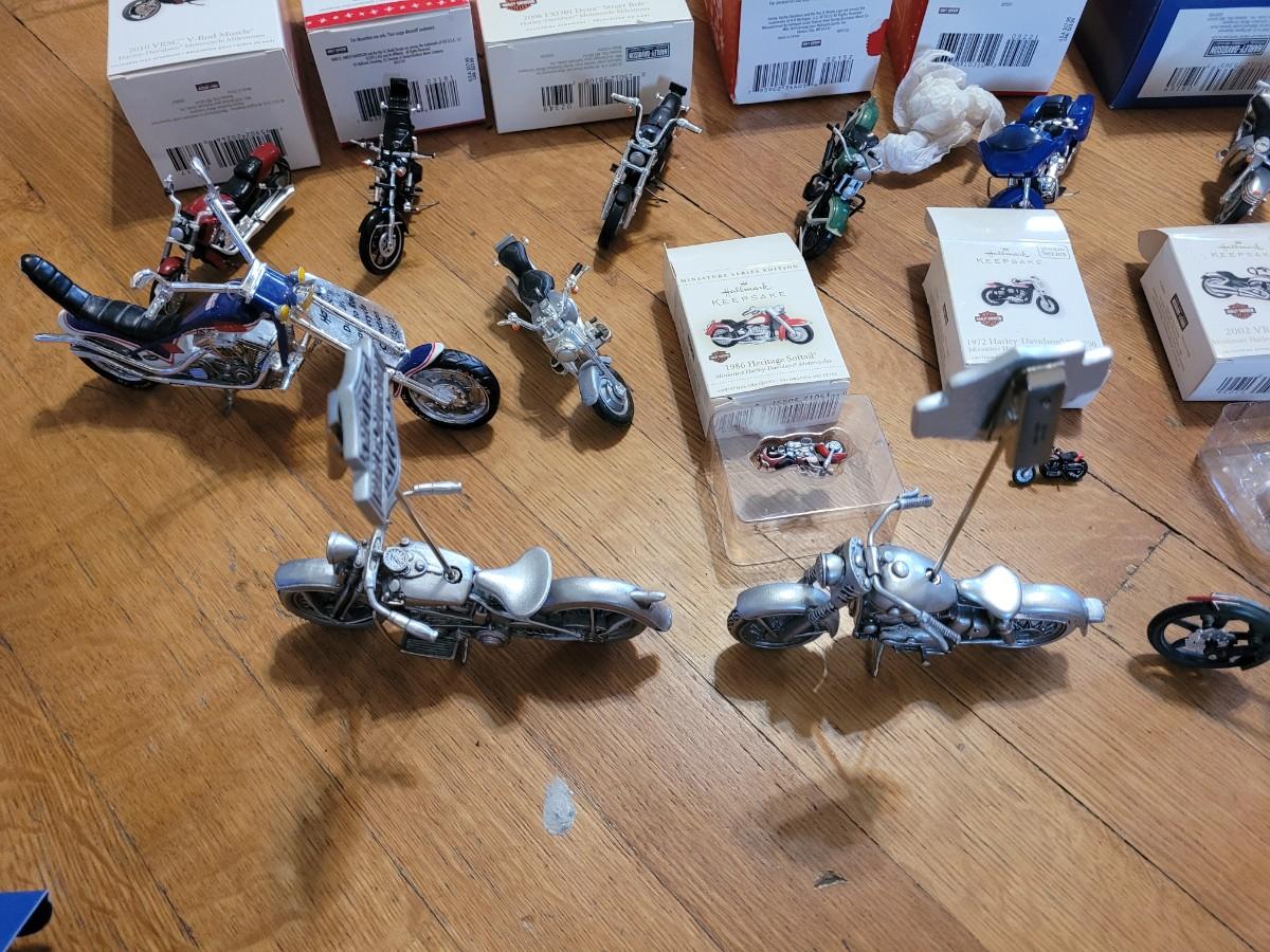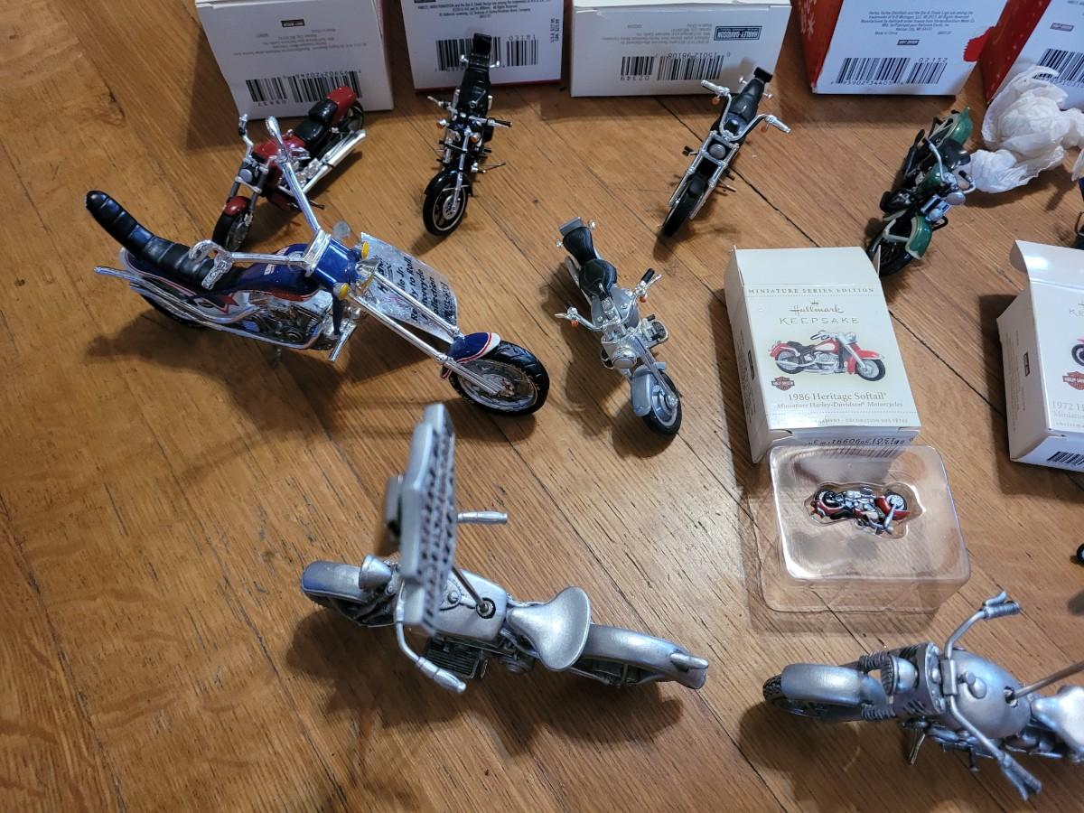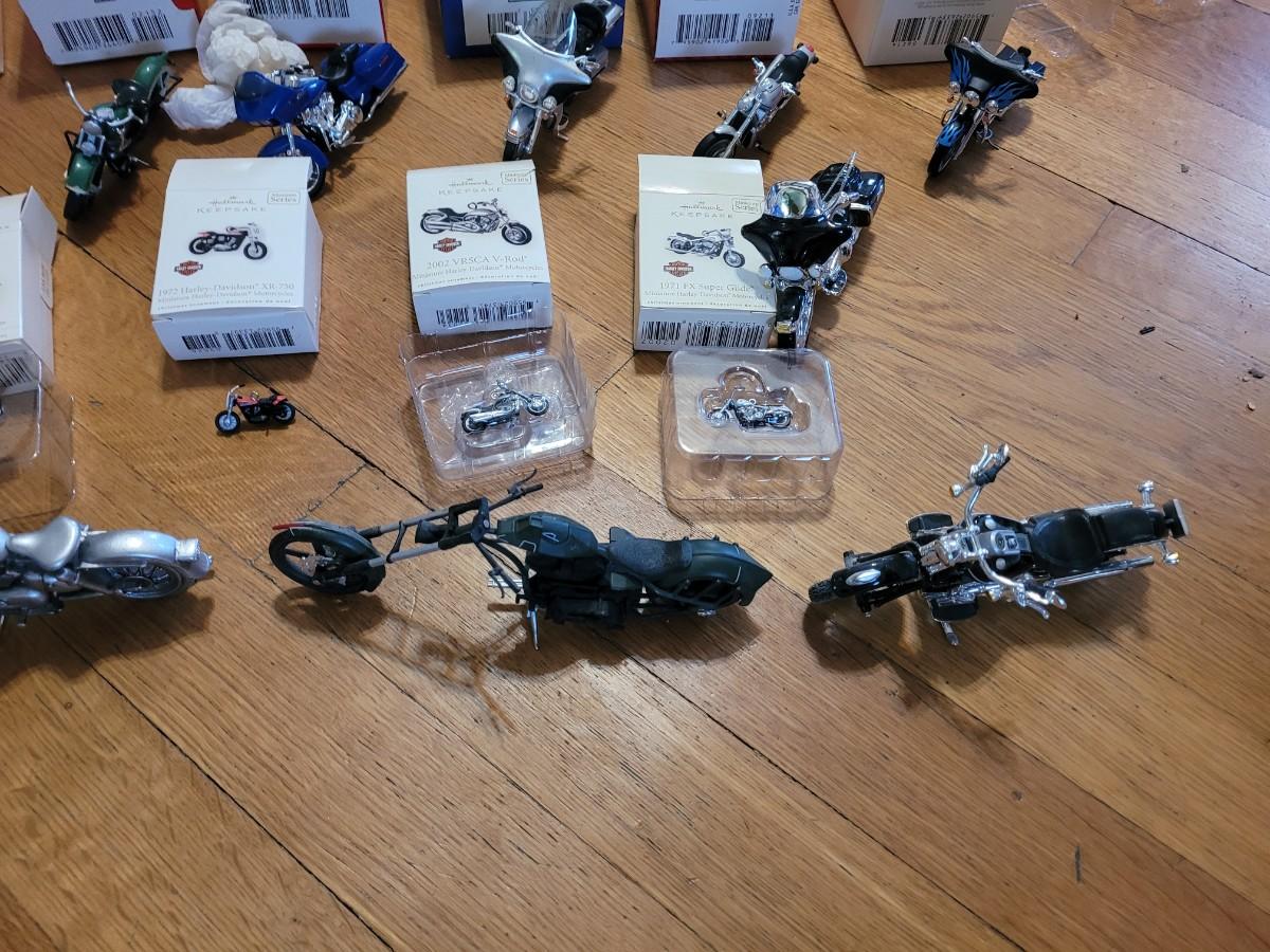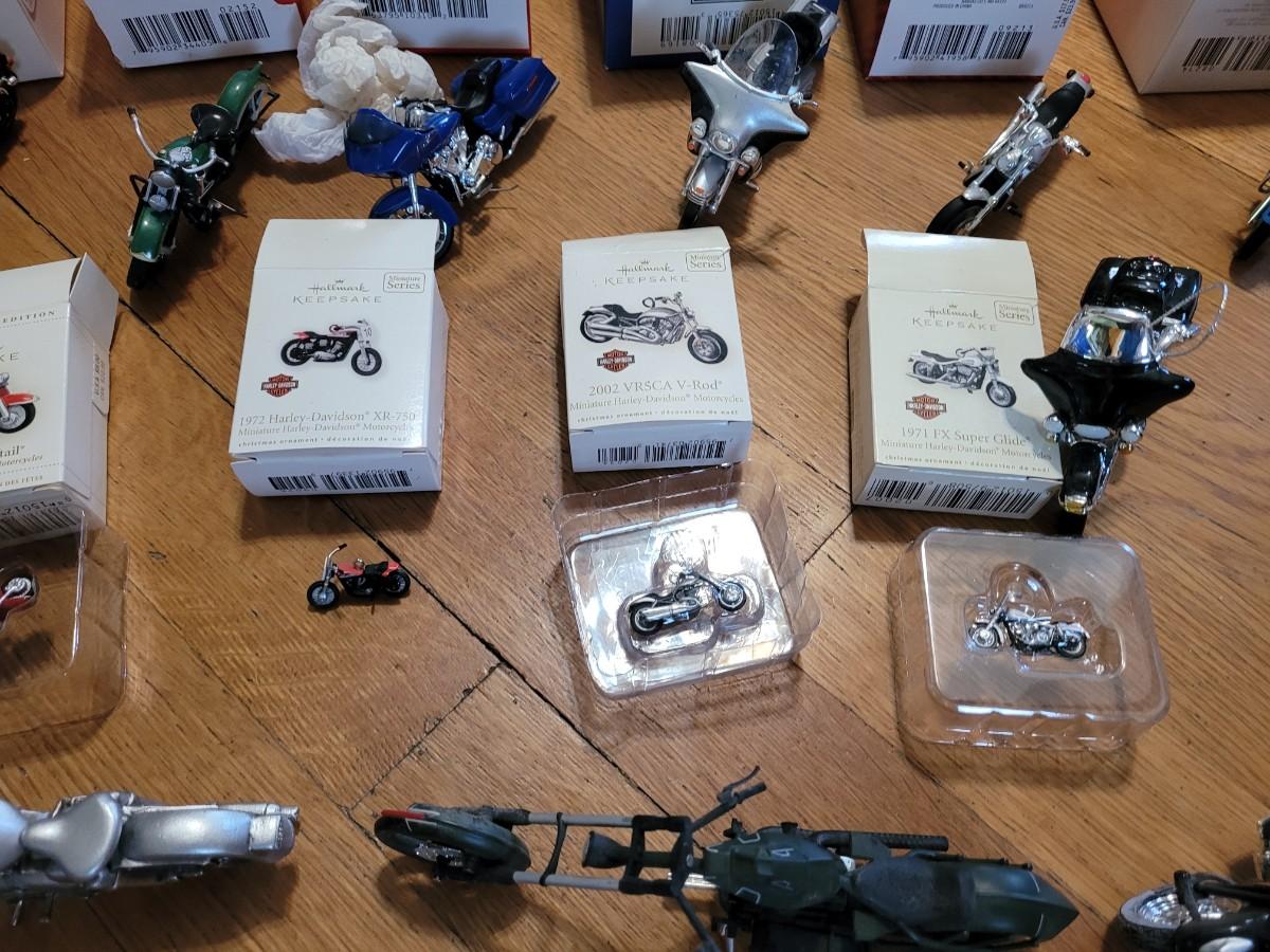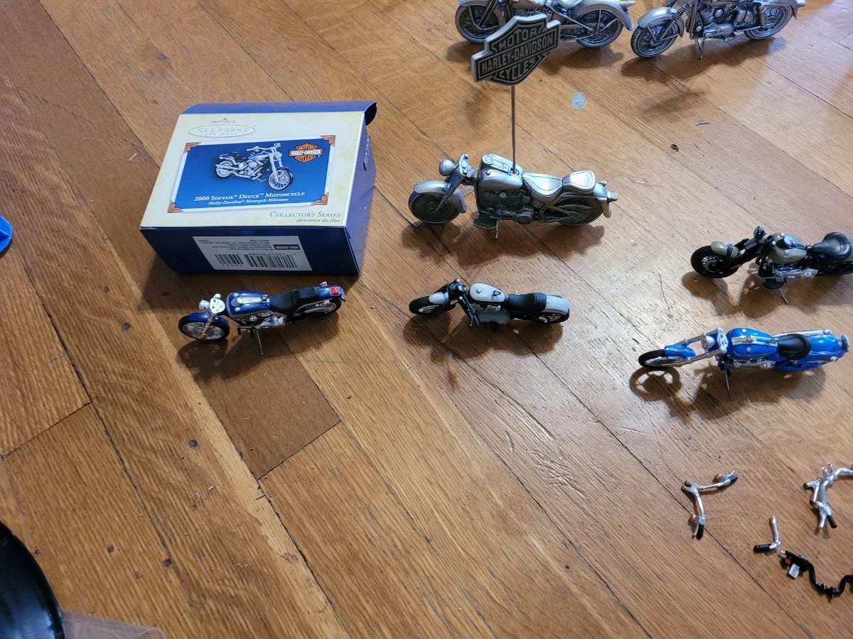 Lot of hallmark and other Harley Davidson minutures replica collectors items