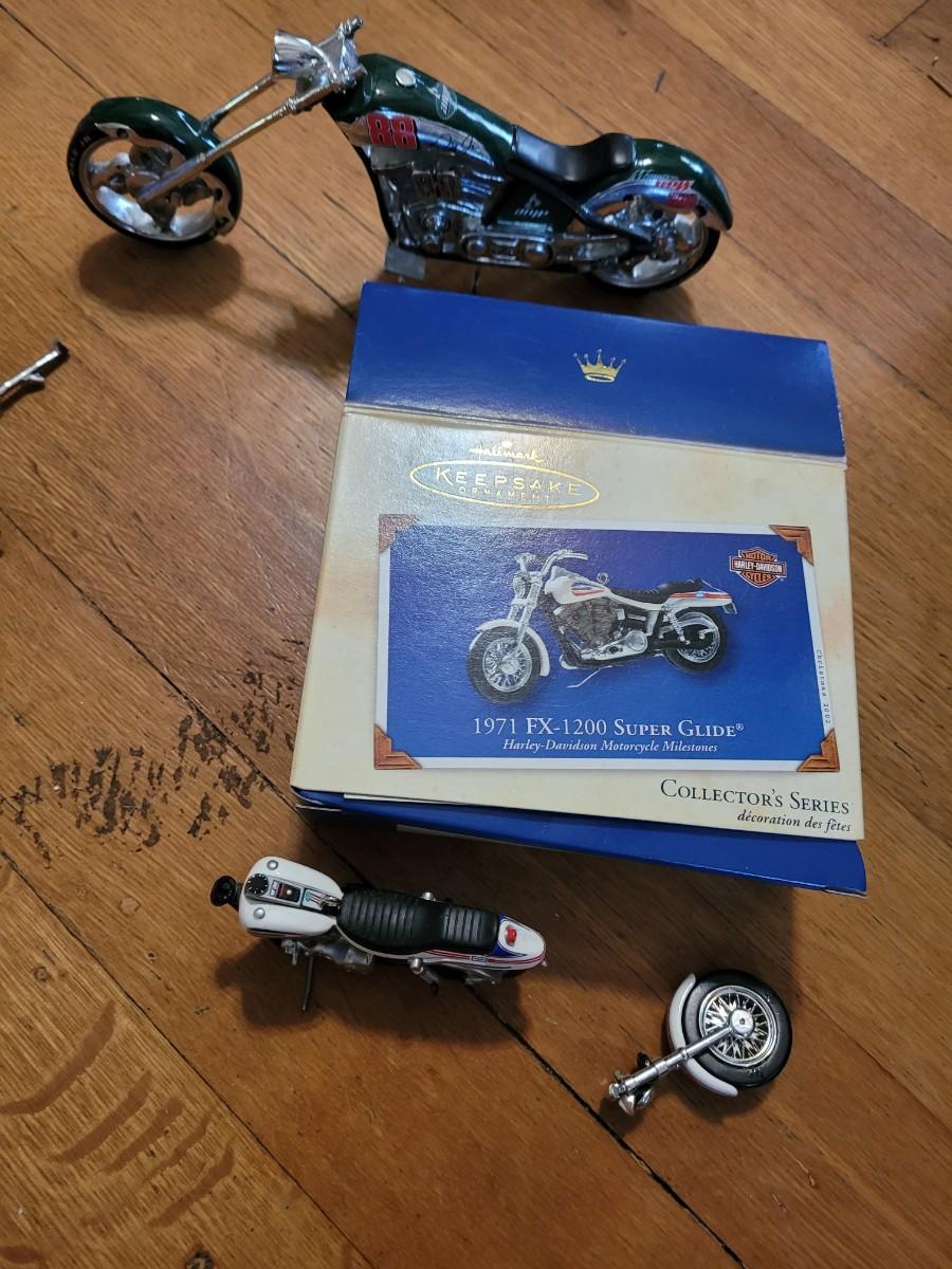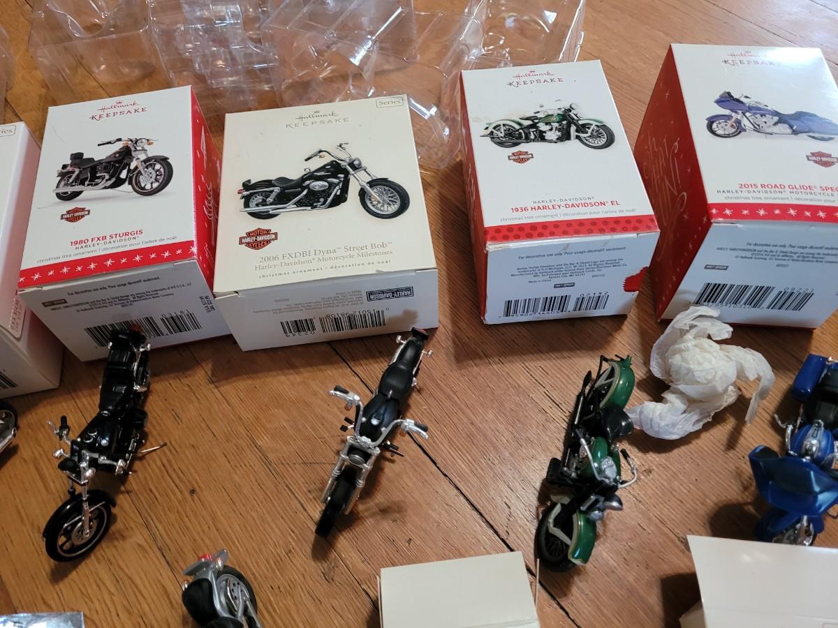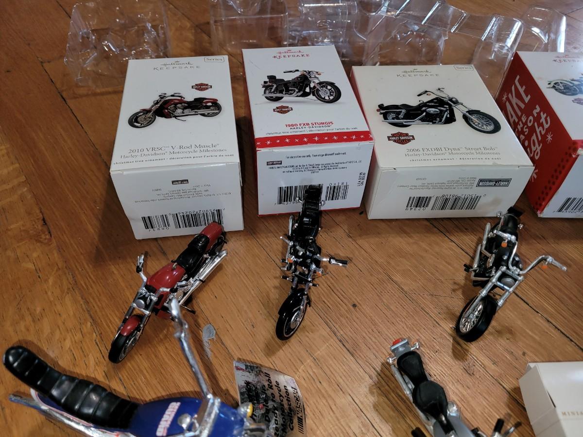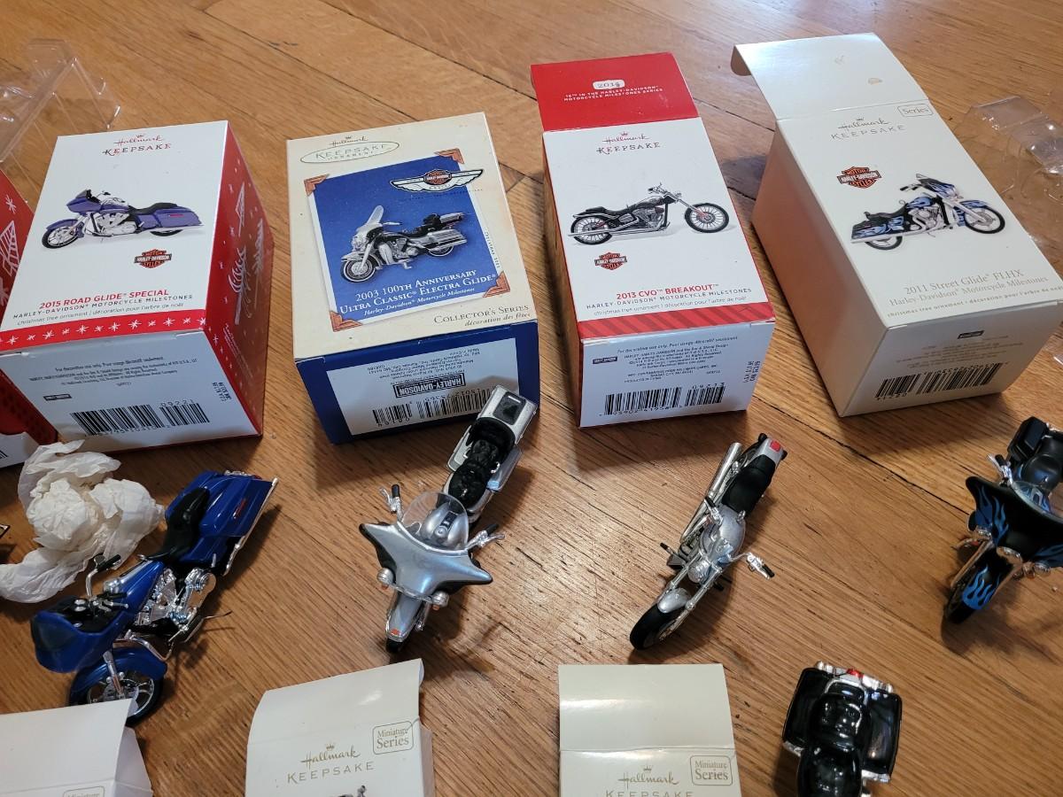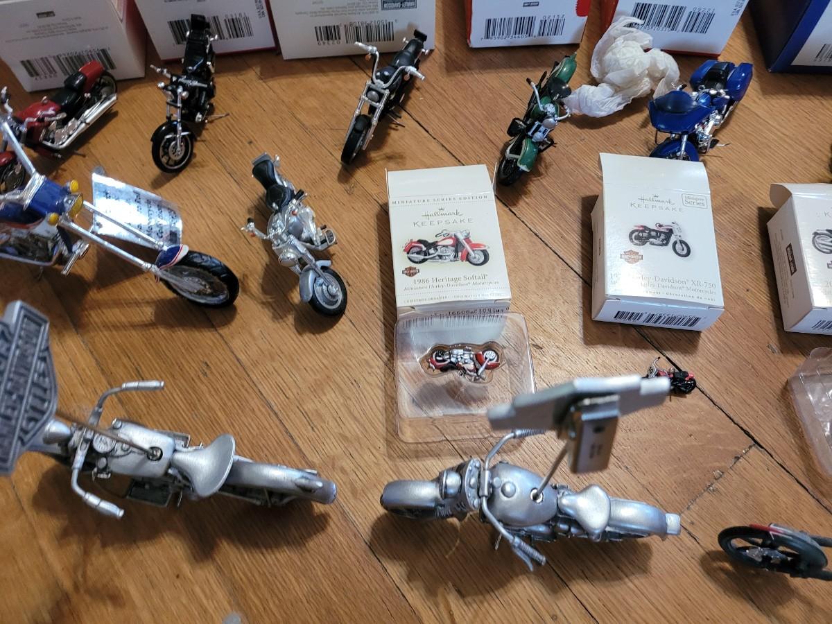 Lot of hallmark and other Harley Davidson minutures replica collectors items
