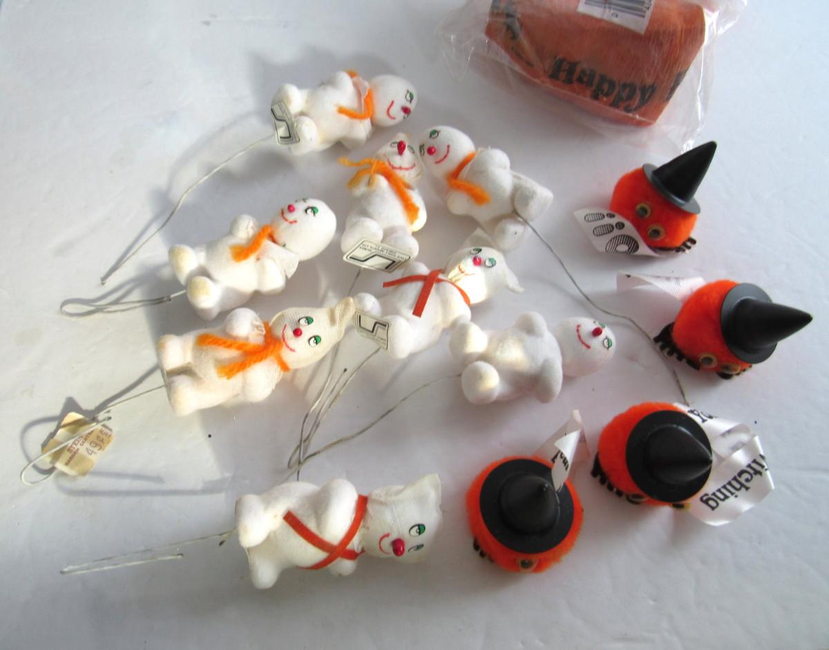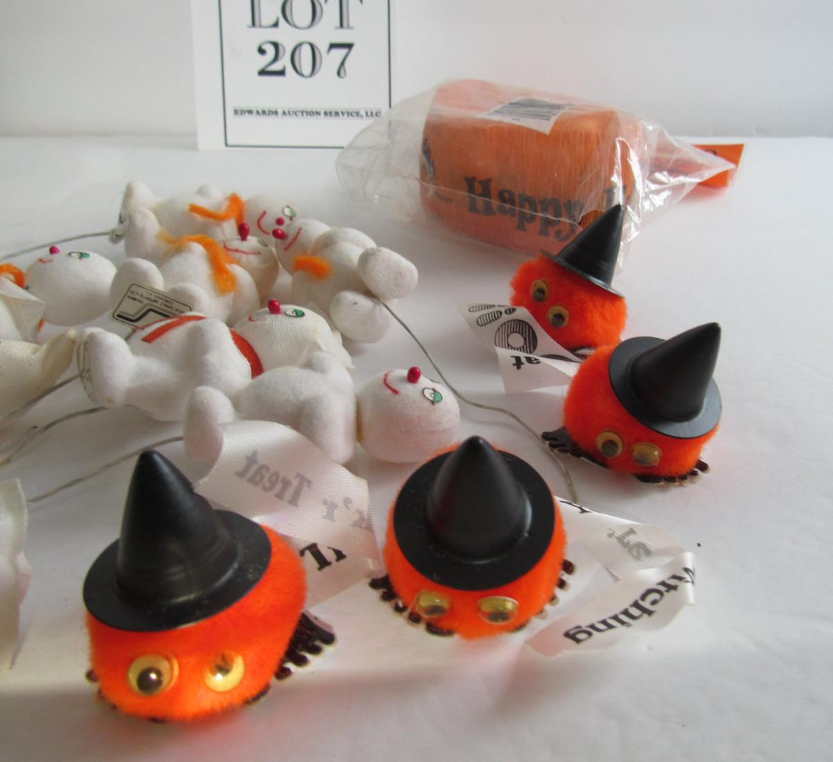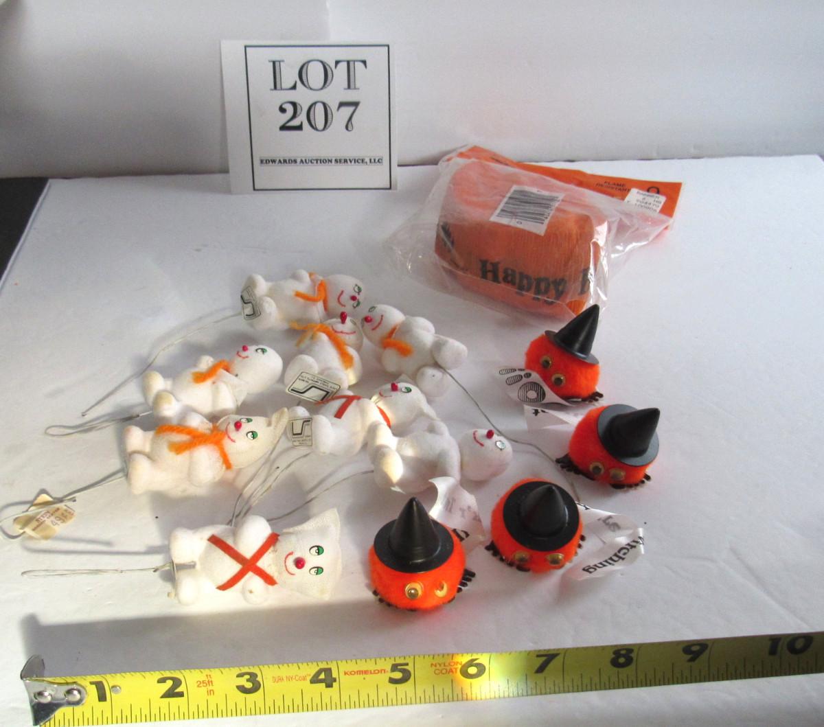 The ghosts have some wear and soiling in spots, streamer is unused in pack. The pumpkin stickers are too cute, but are wrinkled. Shipping is available at cost plus $5.00 per box handing and supply fee. See our terms for details. All sales final.