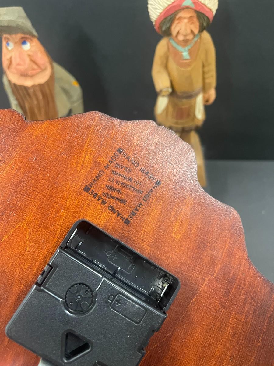 Lot of Hand Carved Wood Figurines and Clock