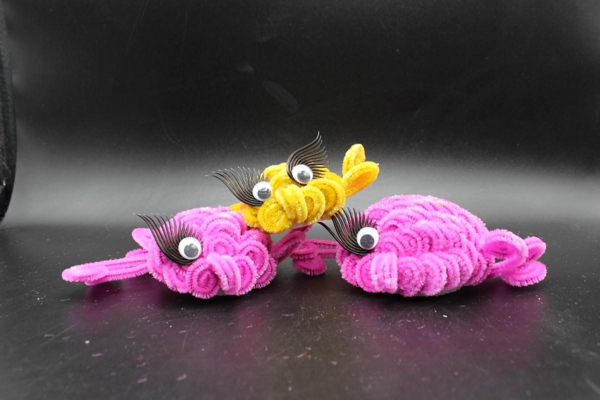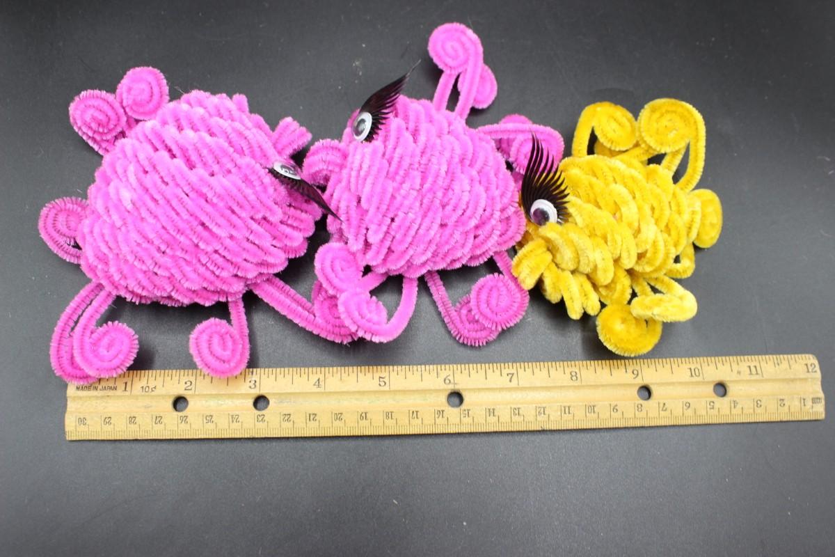 Lot of Handmade Arts & Craft Creatures made from foam and colorful bendable pipe cleaner pieces. There is no significant damage to either of the crafted creatures and is in good condition, check pictures for more details and for sizing.