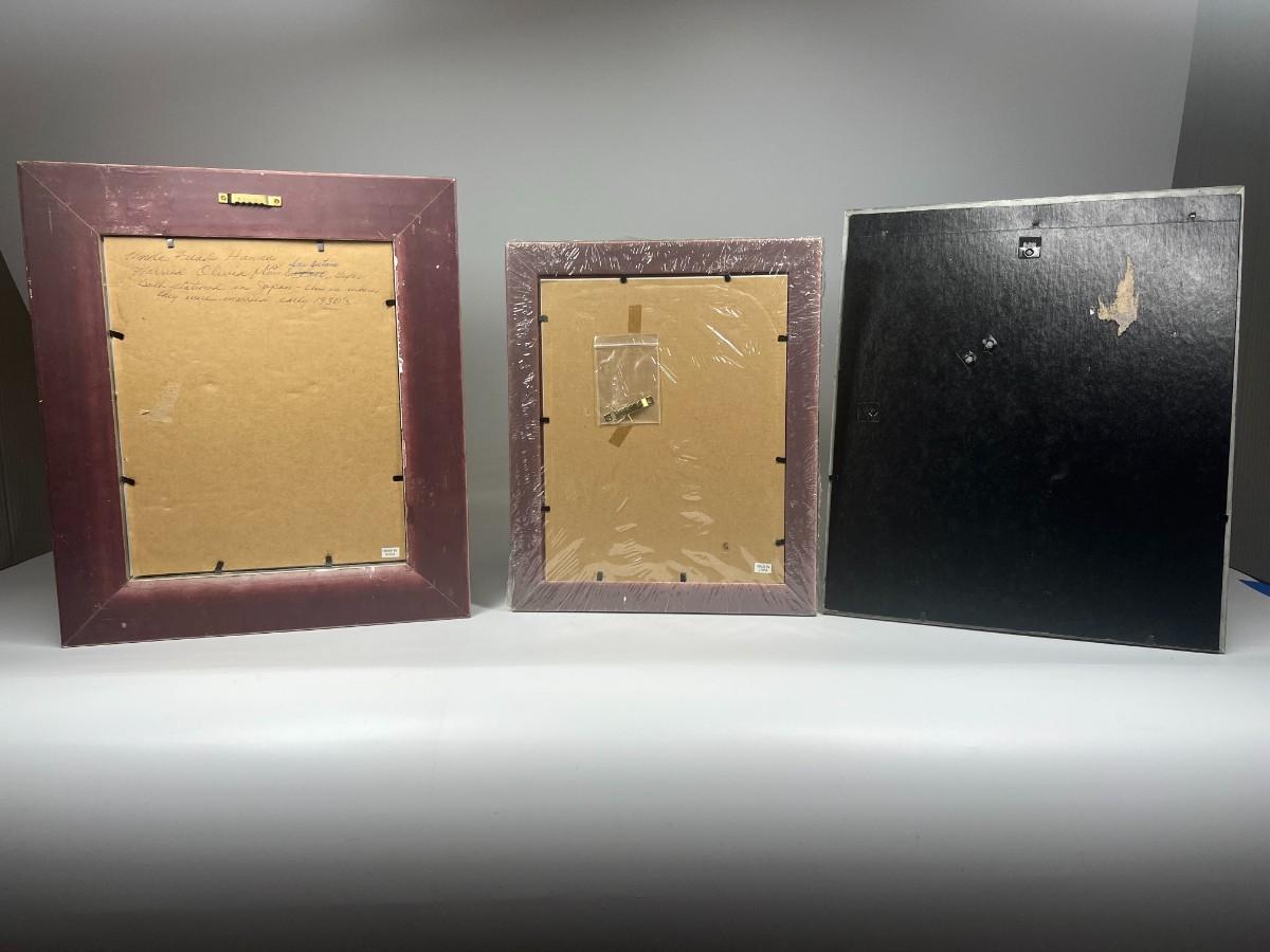 Lot of Hanging Photo Memories Picture Frames Aaron Brother & More, there is no significant damage to any of the photo frames and is in good useable condition. The Aaron Brothers frame has not been used and is still wrapped in its original packaging. Check pictures for more details and for sizing.