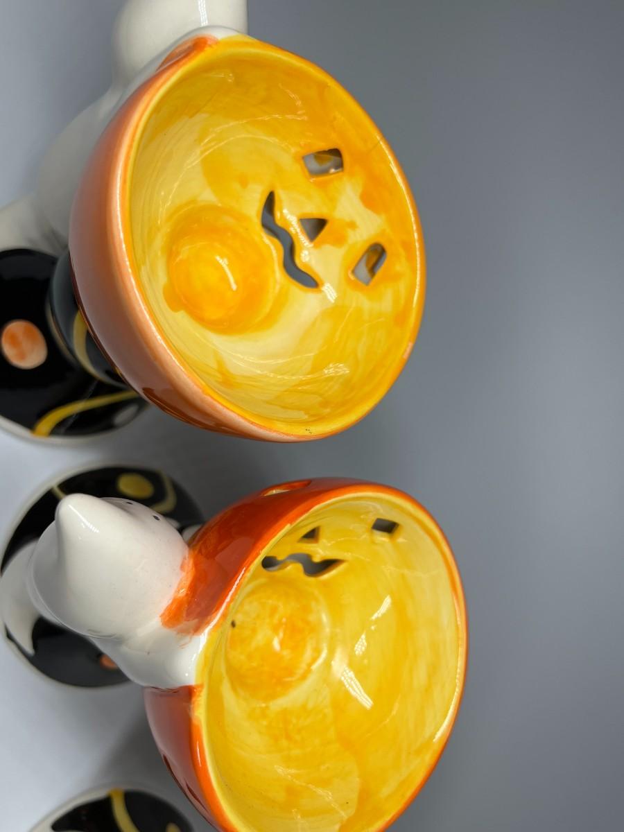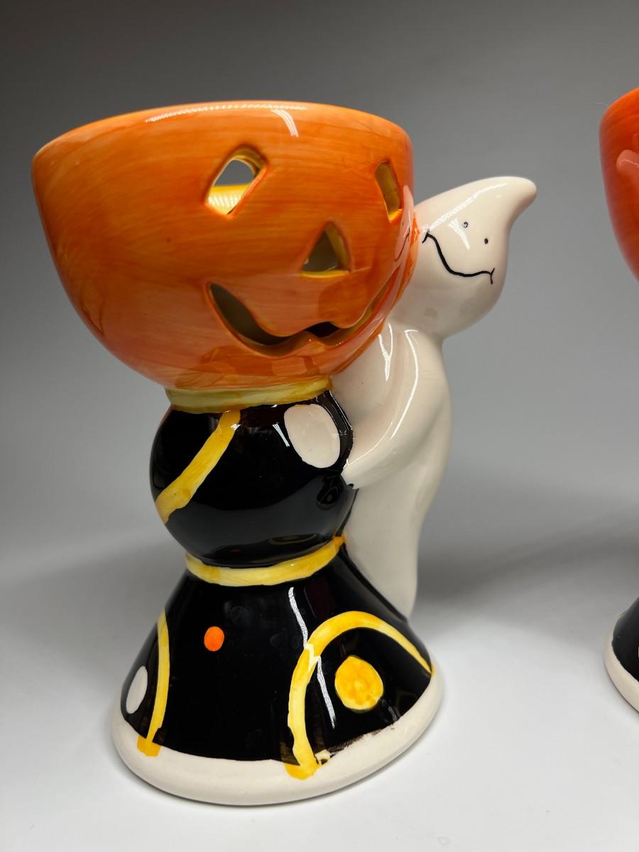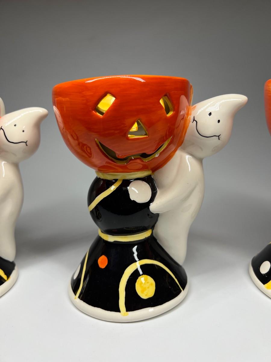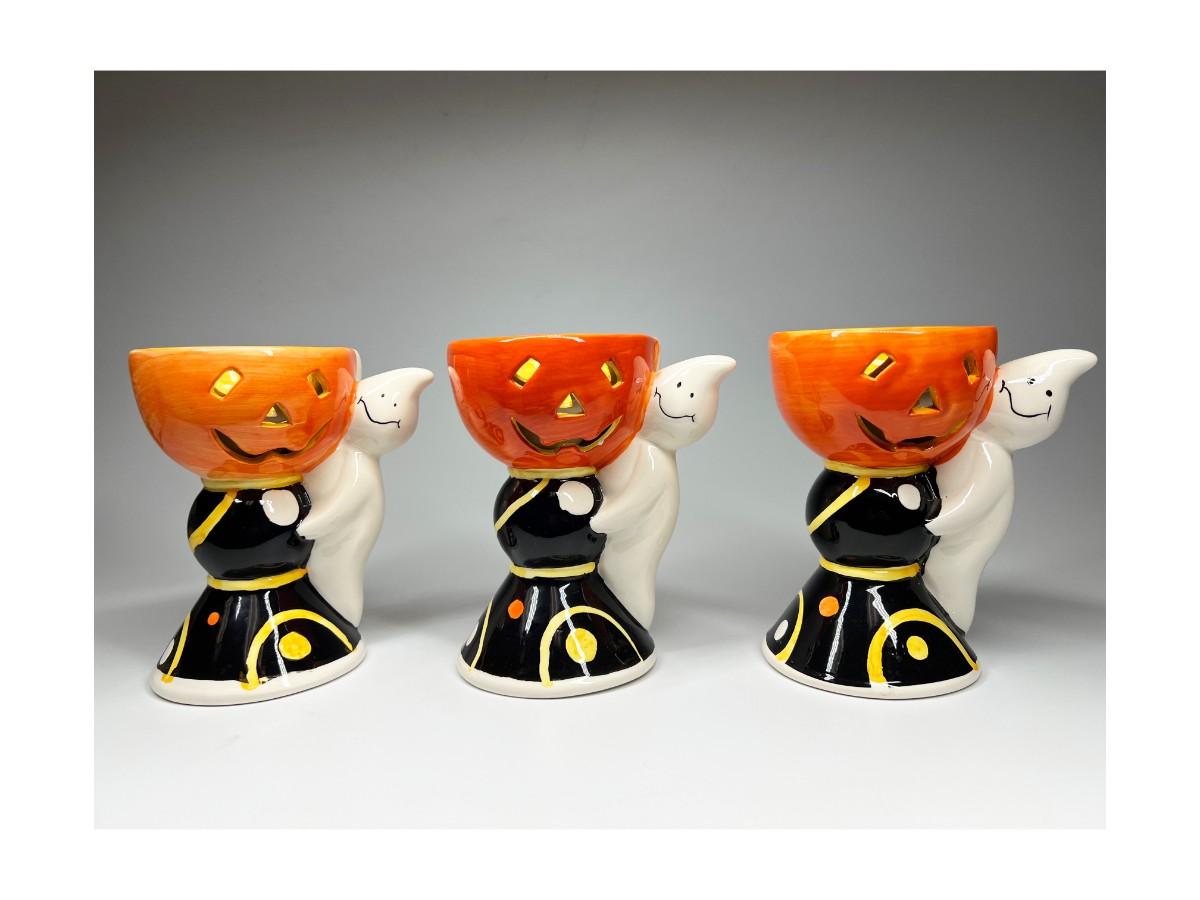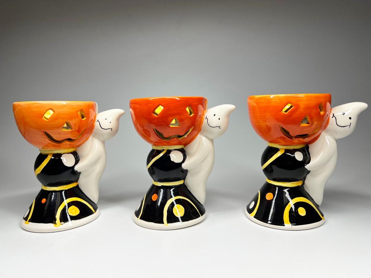 Lot of Happy Ghost Pumpkin Ceramic Candle Holder Candy Bowl Dish Halloween Decor