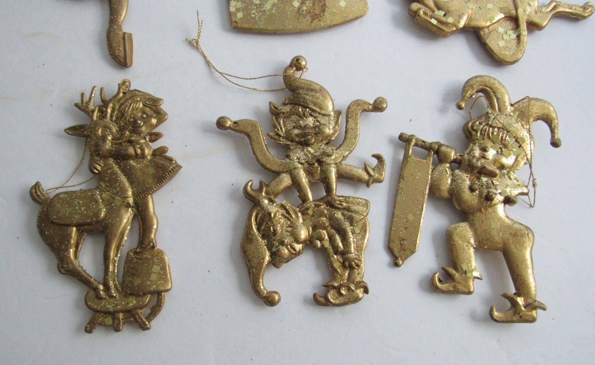 Lot of Hard Plastic Glittered Christmas Ornaments, Unusual Older Ornaments