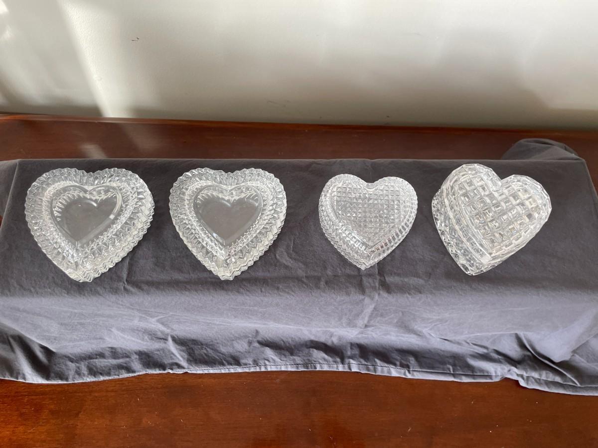 Lot of Heart Shaped Glass Decorative Trinket Dishes