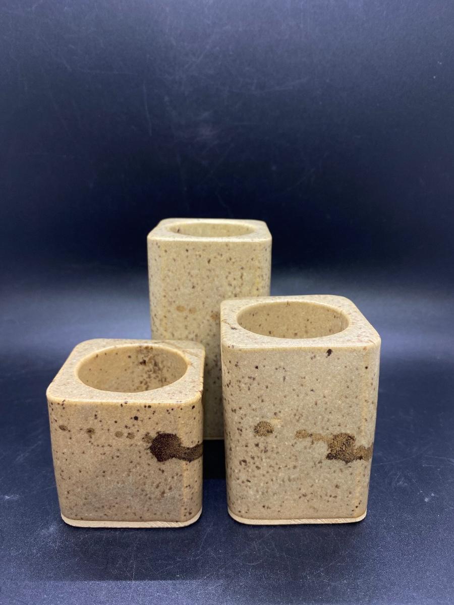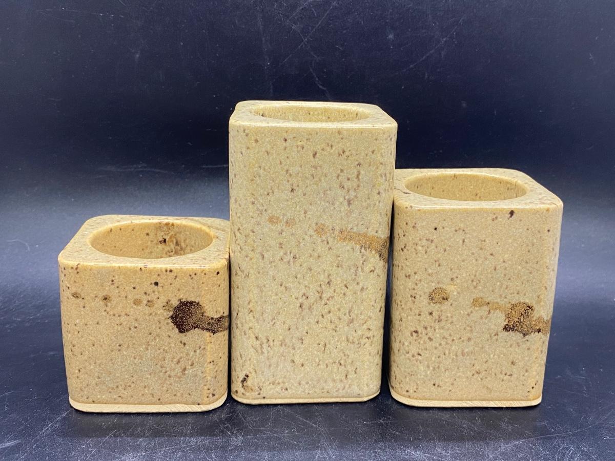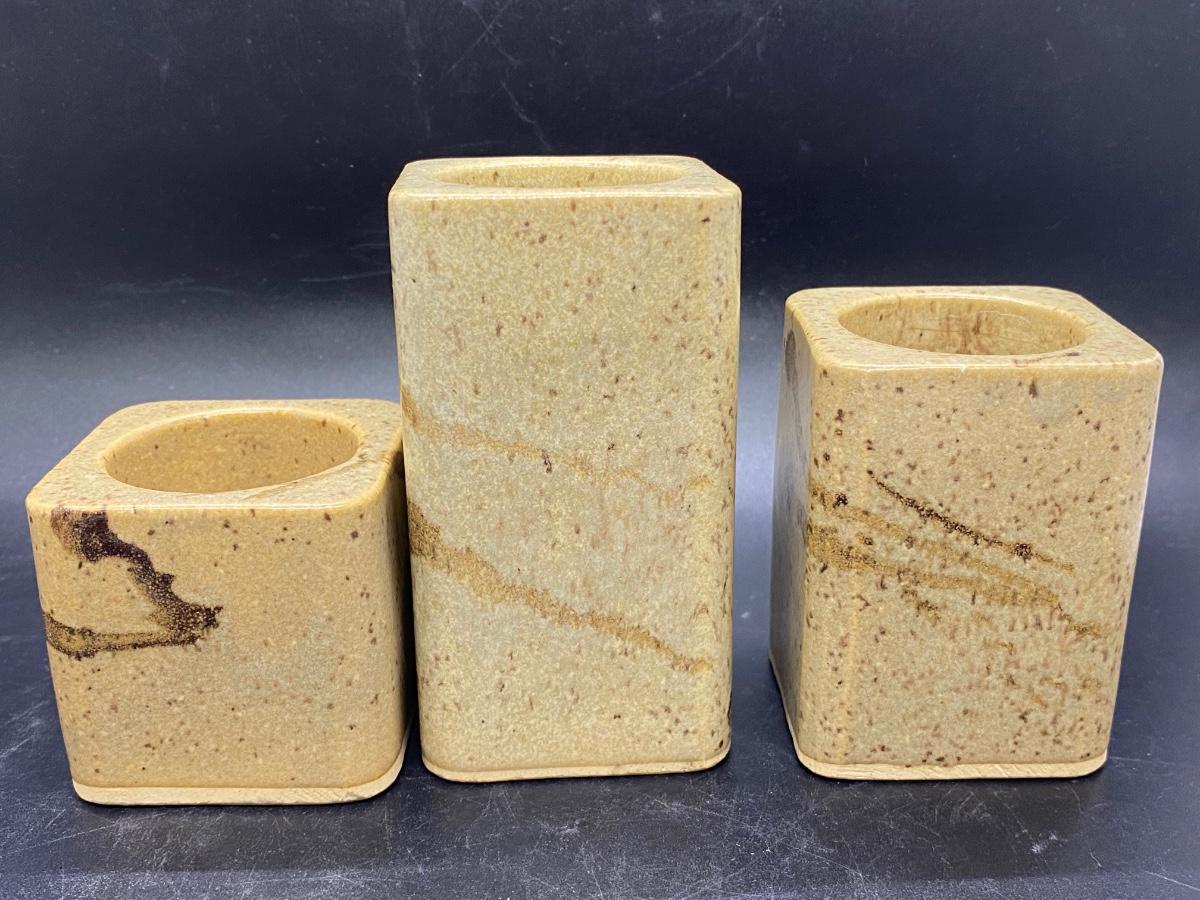 Lot of Heavy Ceramic Stoneware Minimalist Modern Candle Holders