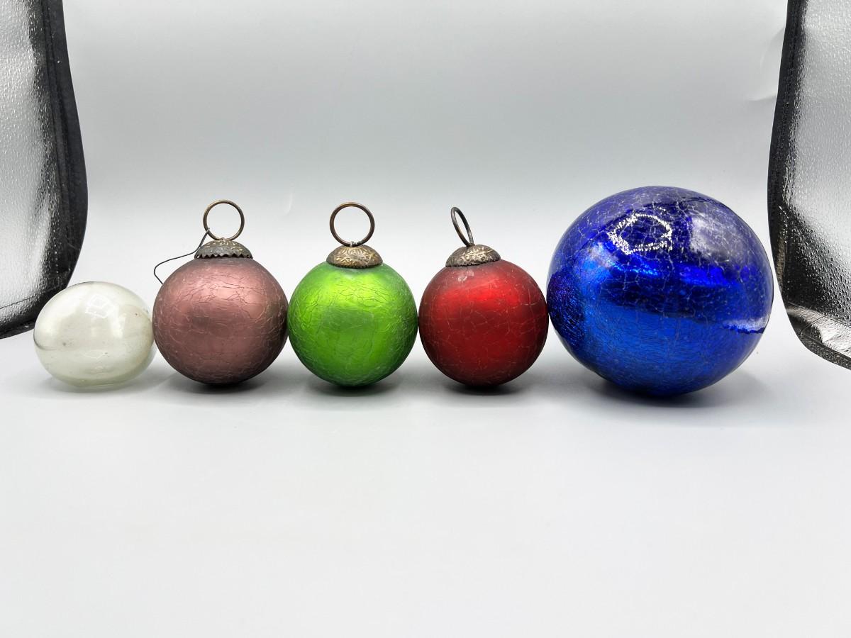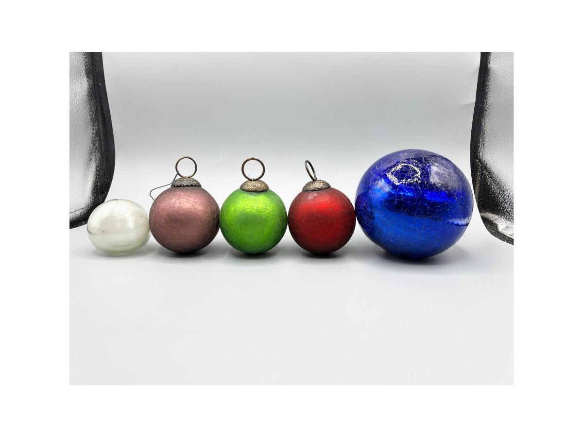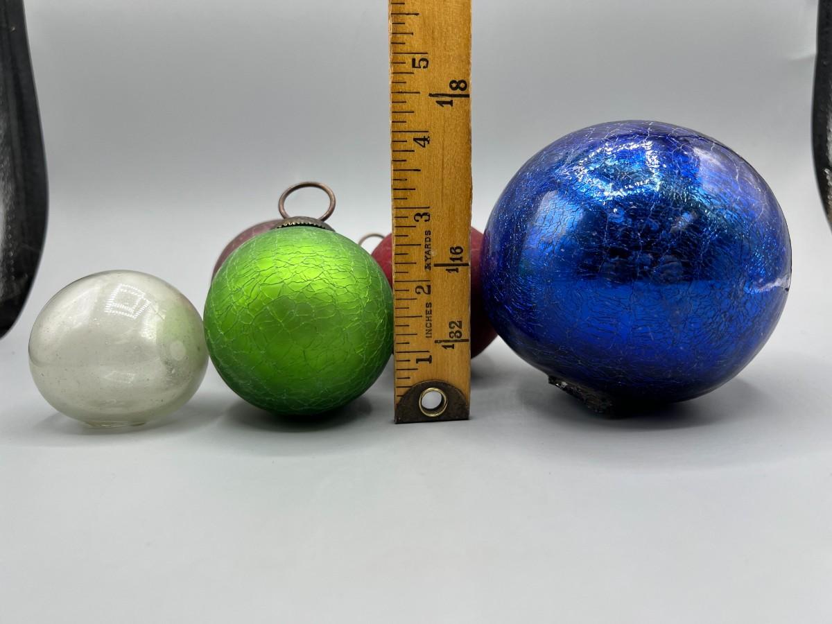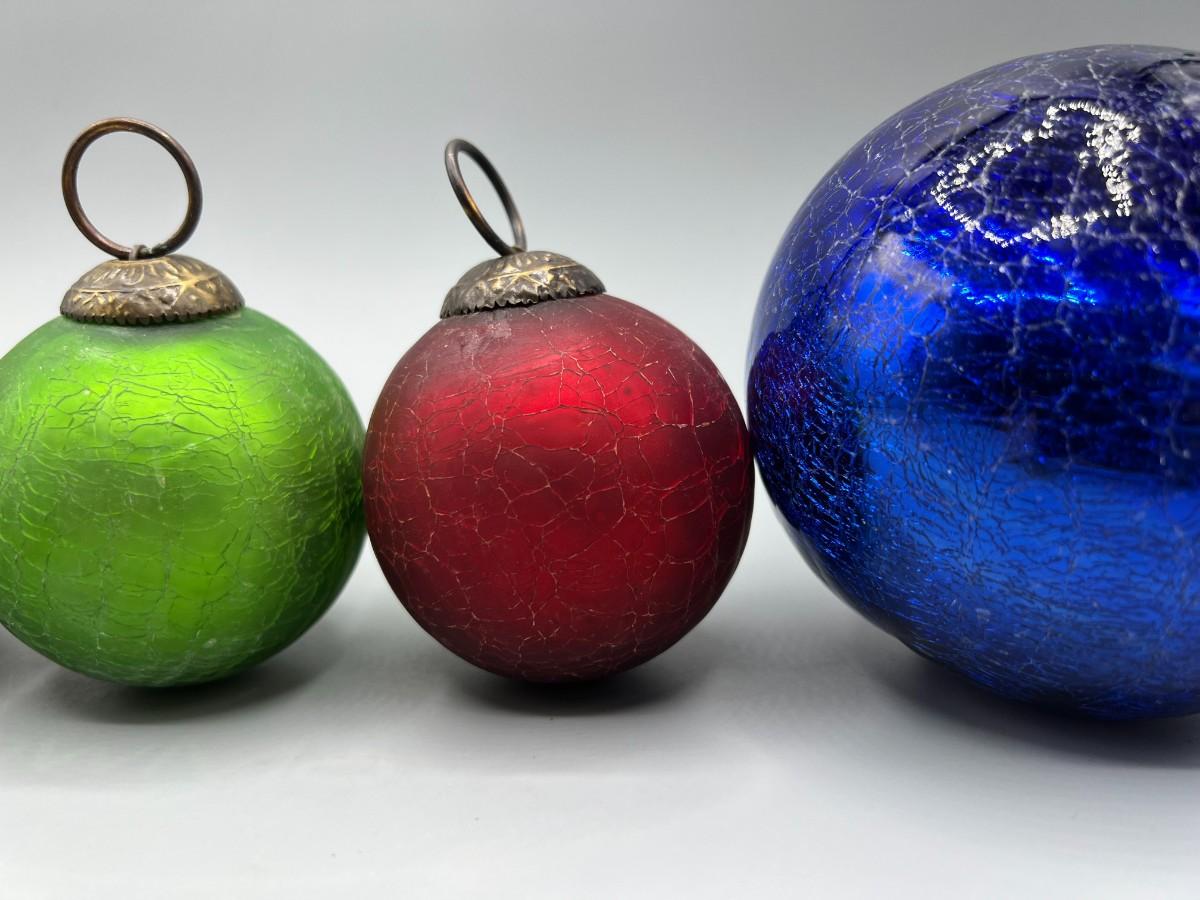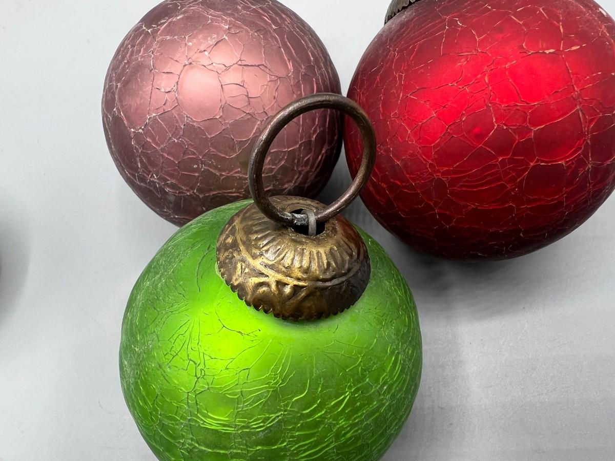 Lot of Heavy Christmas Tree Holiday Ornaments & Decor, there is some damage to the glass spheres, but there is no signifncant damage to the ornaments and is in good displayable condition. Check pictures for more details and for sizing.