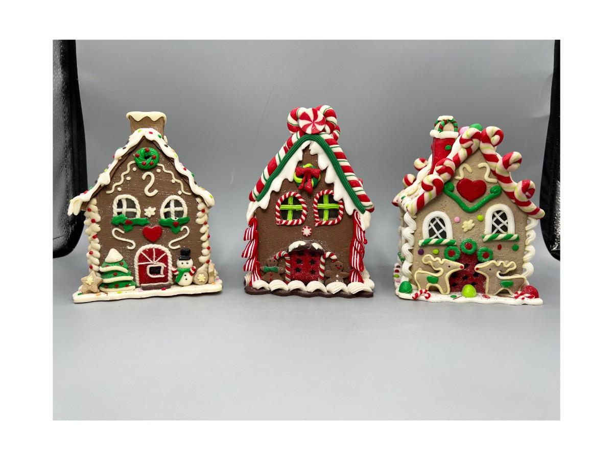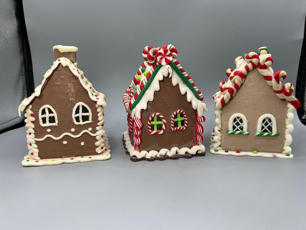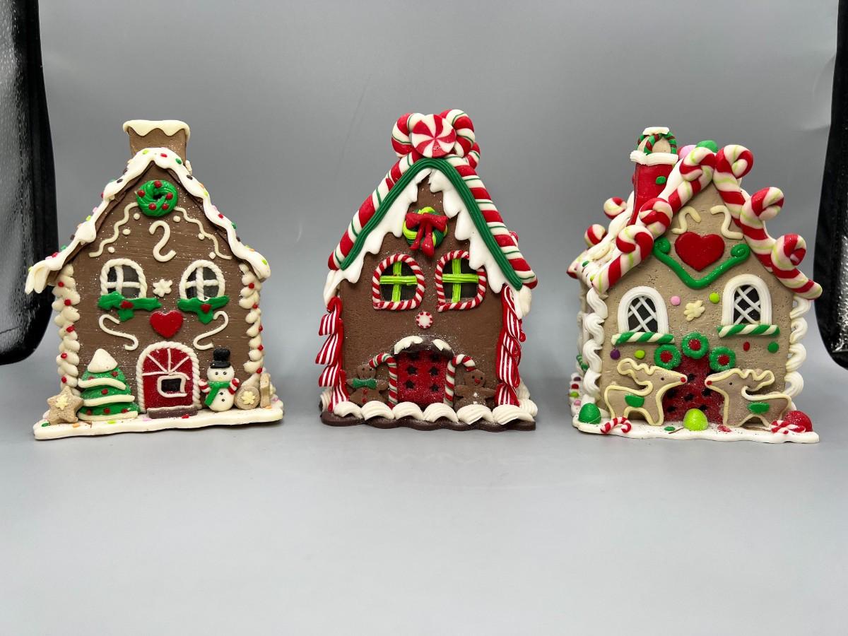 Lot of Holiday Christmas Decor Colorful Decorated Gingerbread Houses, there is some light wear, but there is no significant damage and is in good displayable condition. Check pictures for more details and for sizing.