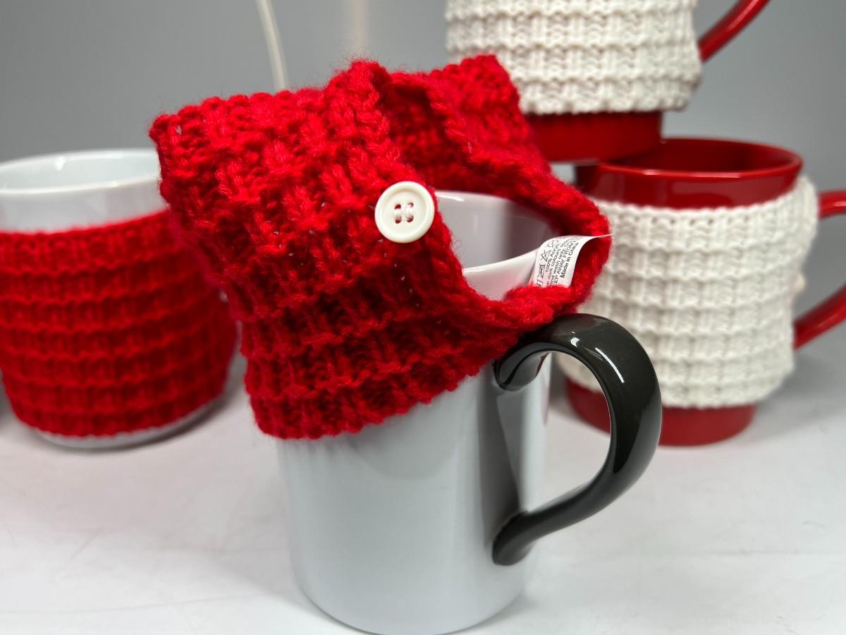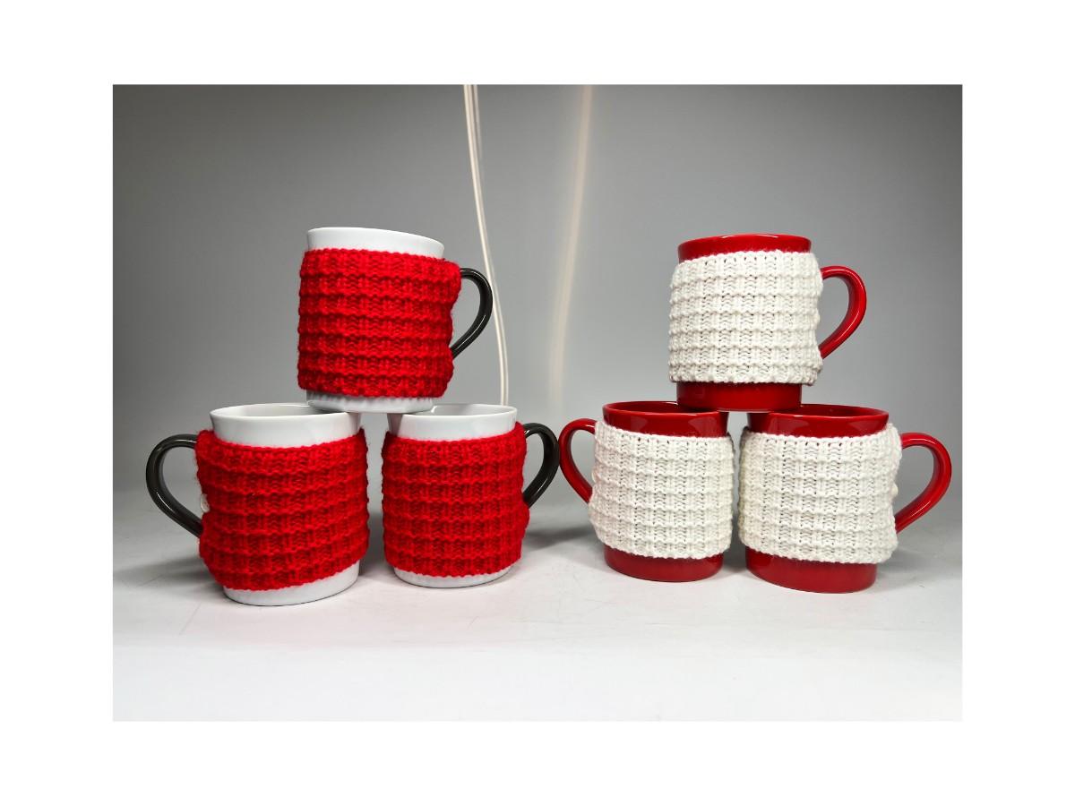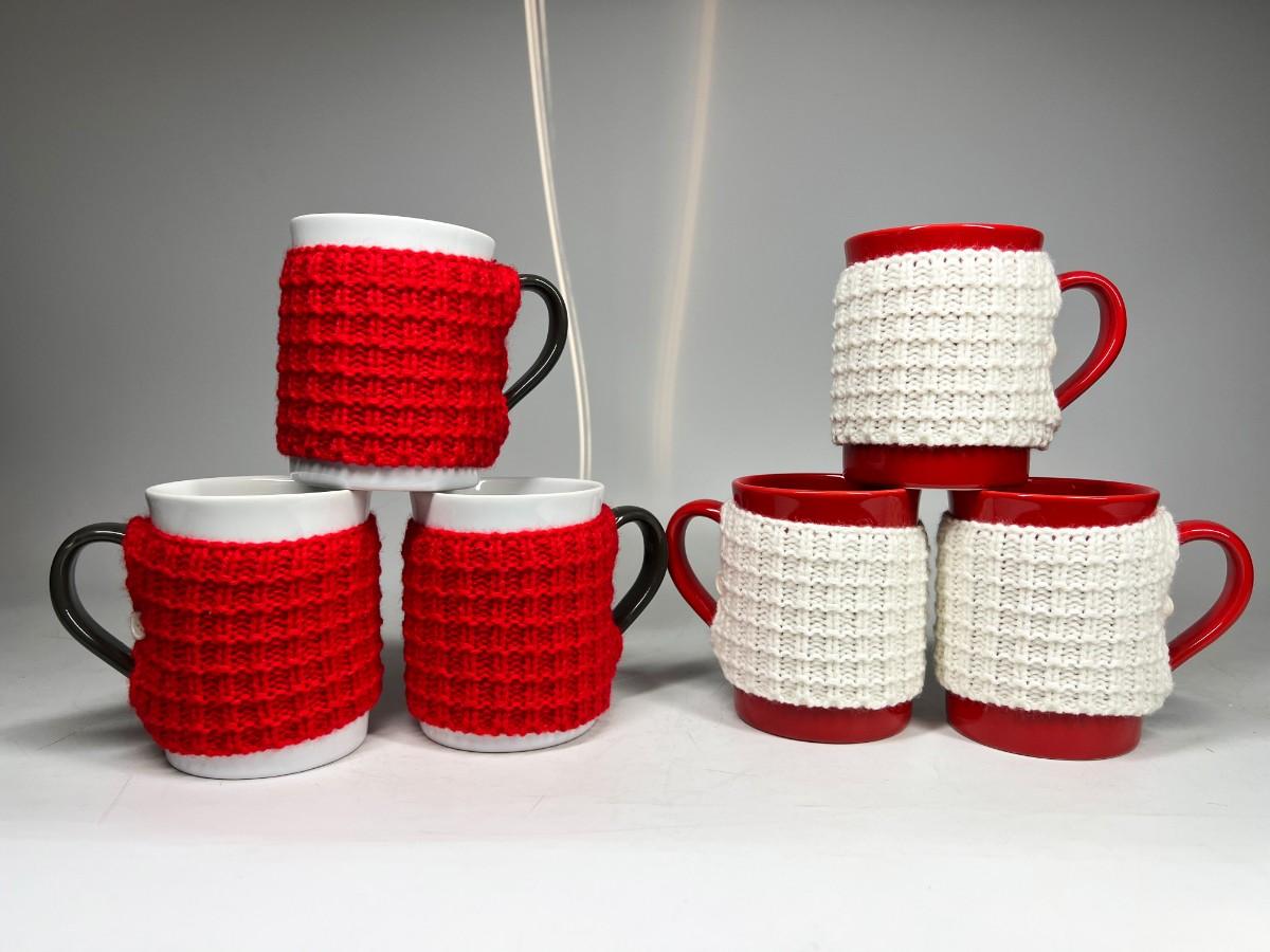 There is no significant damage to any of the mugs and is in good useable condition. The sweaters can be removed from each mug, check pictures for more details and for sizing.