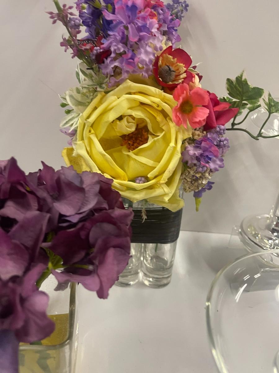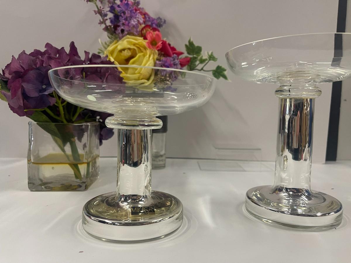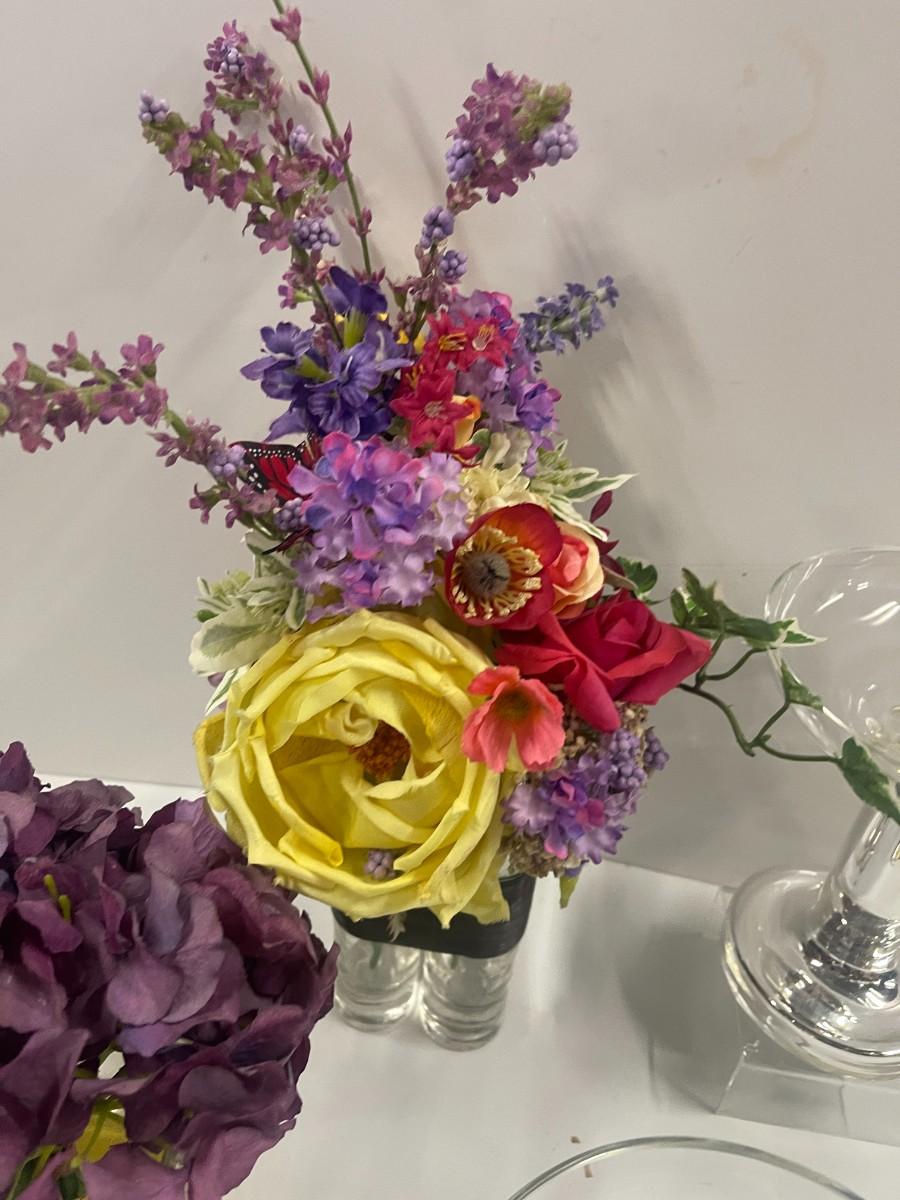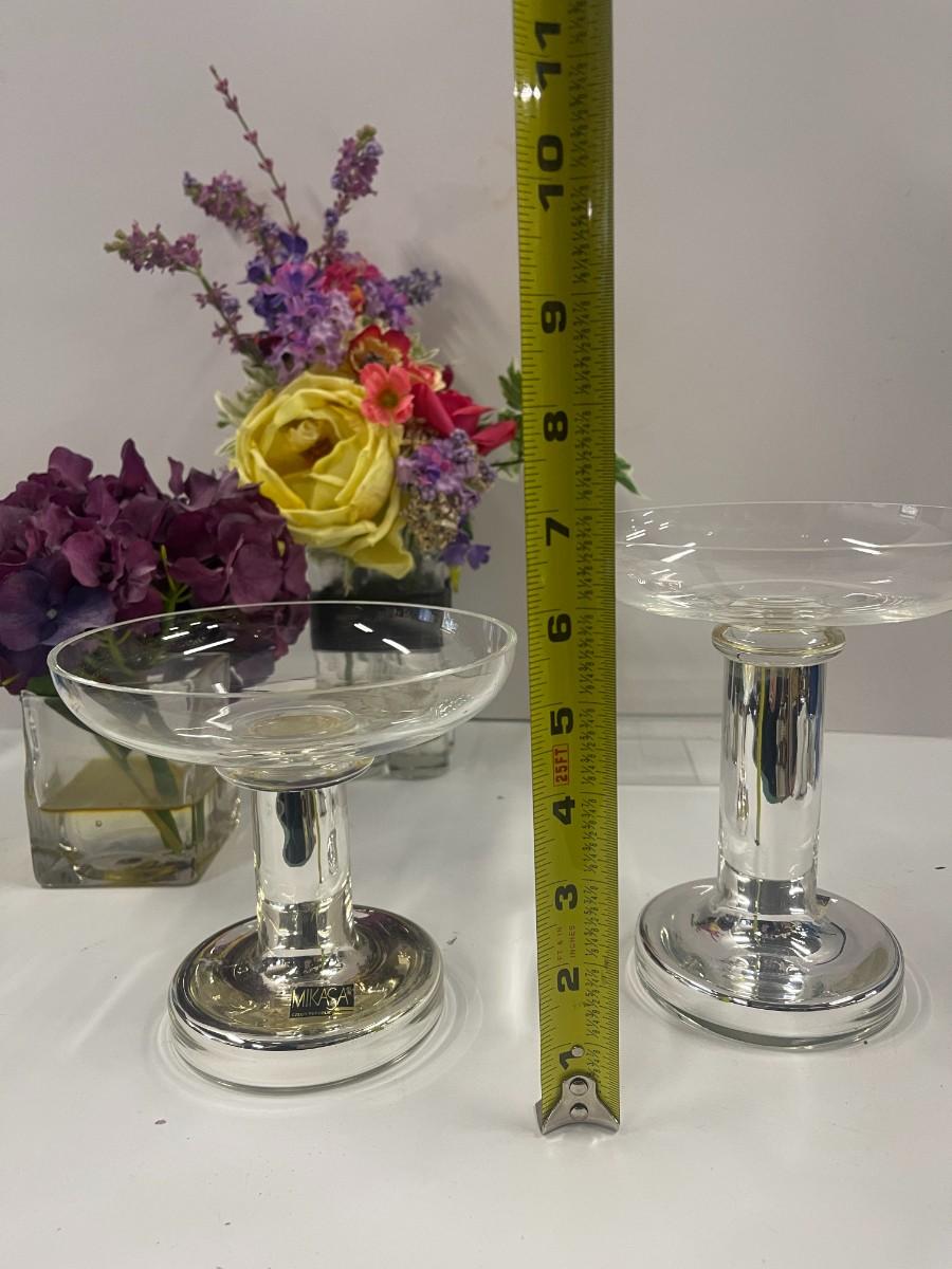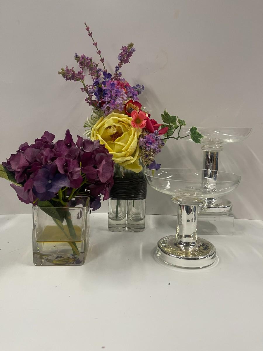 Lot of Home Accents: Artificial Flower Arrangements & Pair of Mikasa Mercury Glass Candle Holders