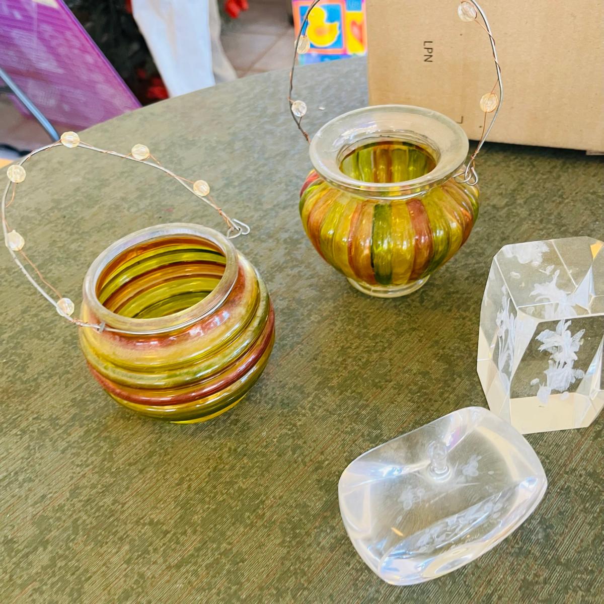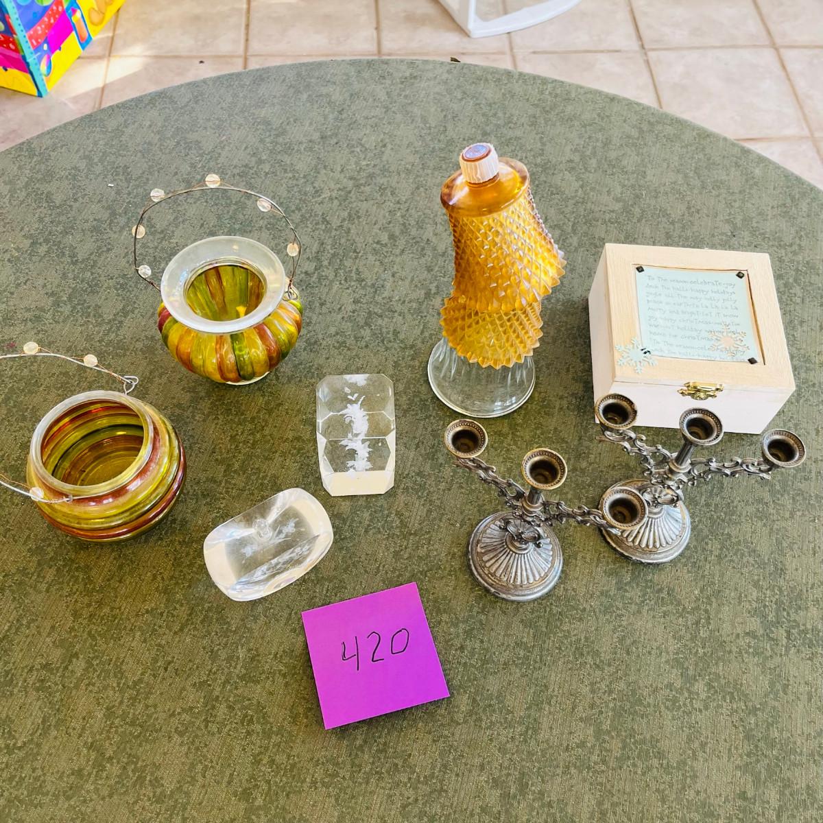 candles, vases, & a box.