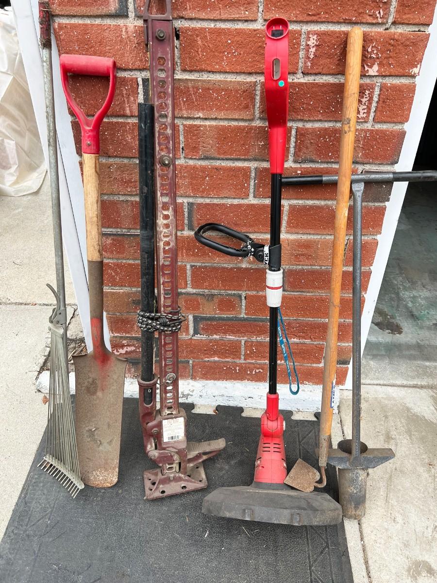 There is some wear, but there is no significant damage. The weed wacker has not been tested, check pictures for more details and for sizing.