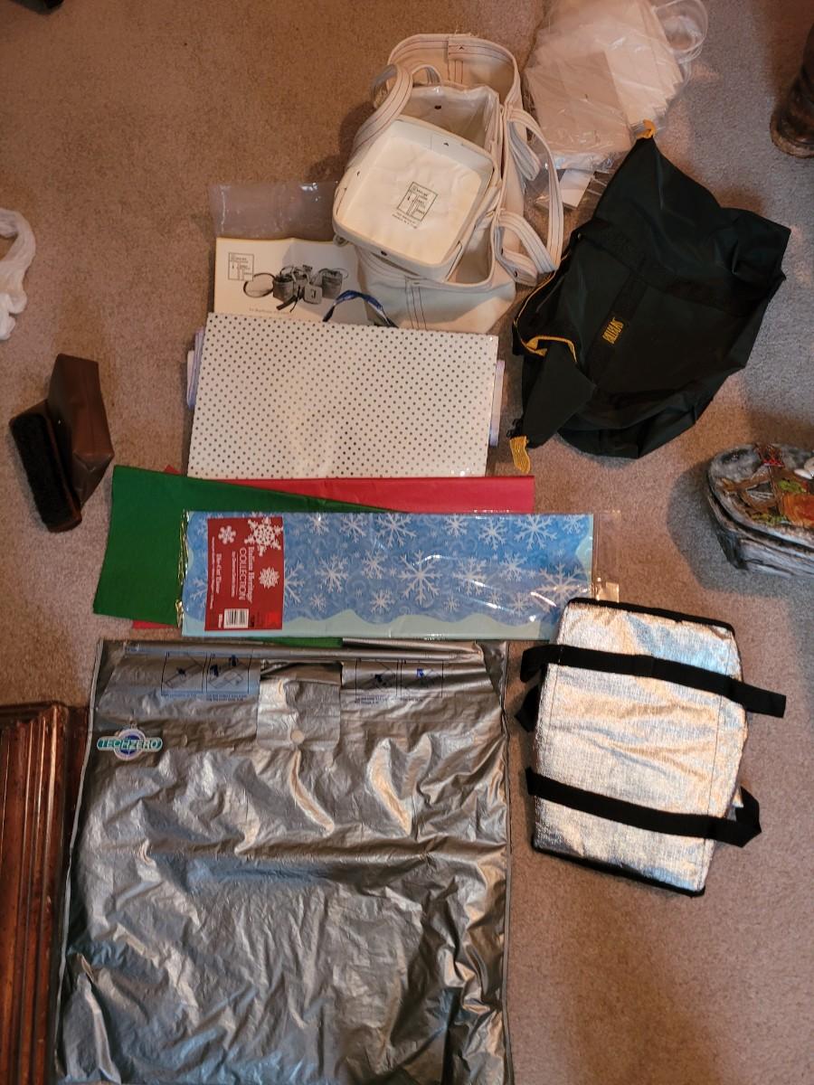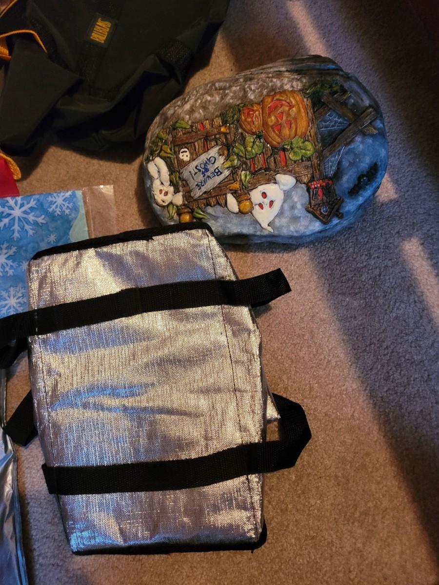 Insulated bags, plastic gift bags Halloween hollow ceramic decoration, vintage shoe brush and tennis tender