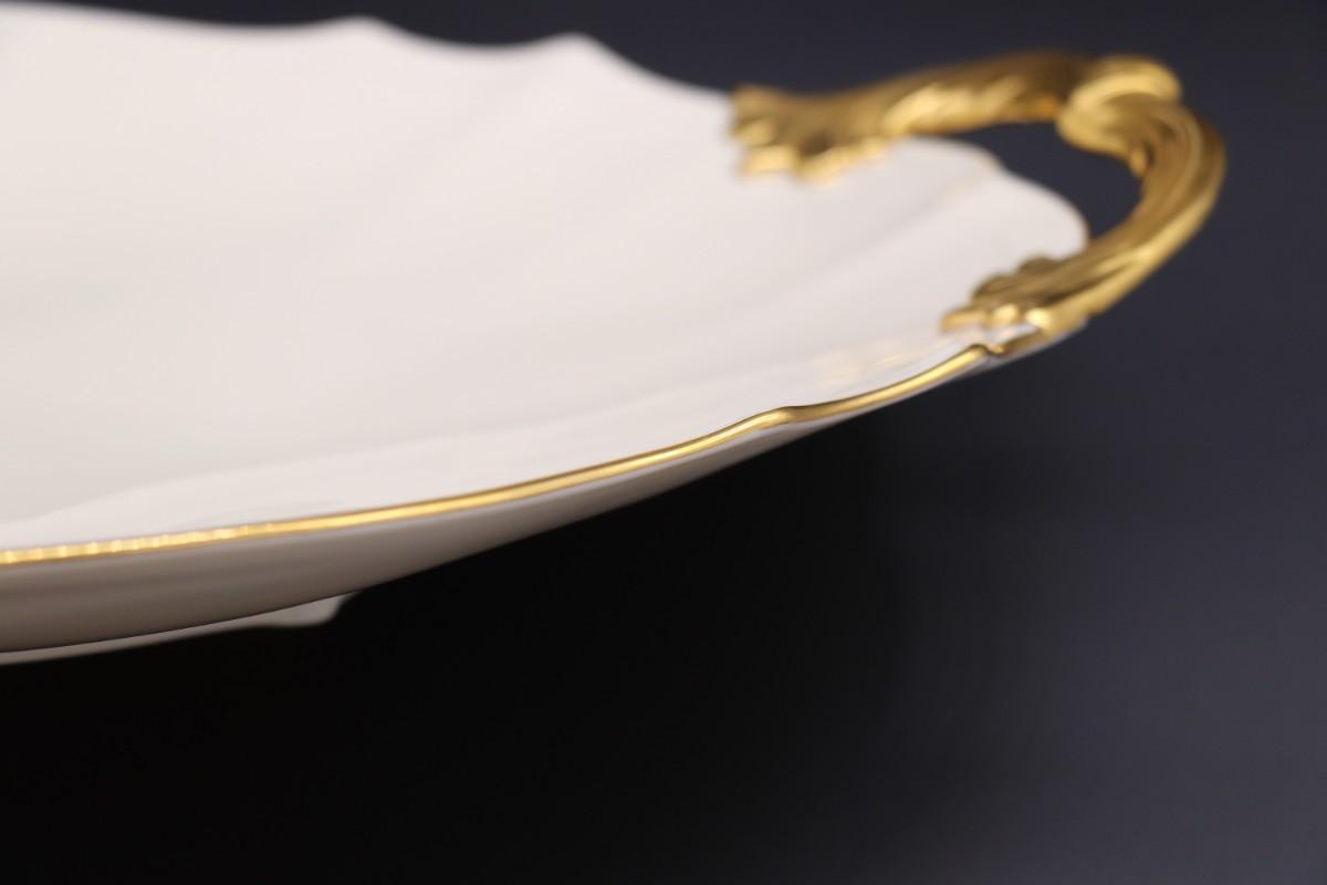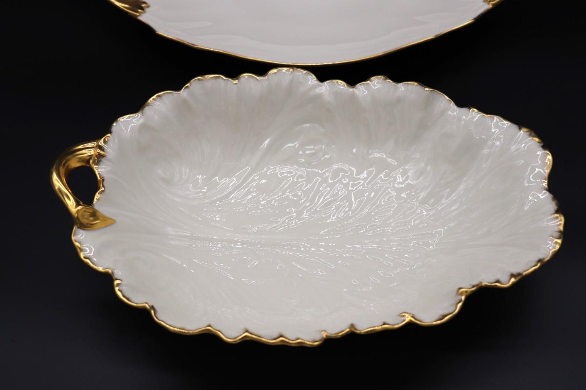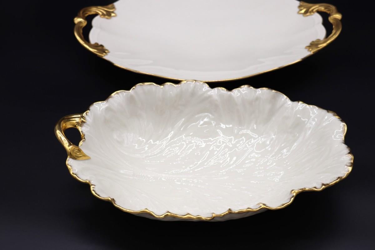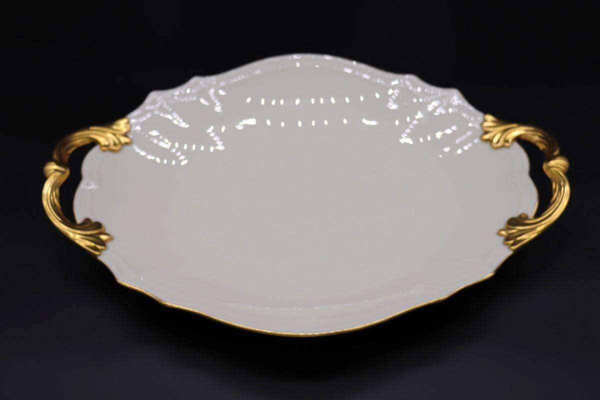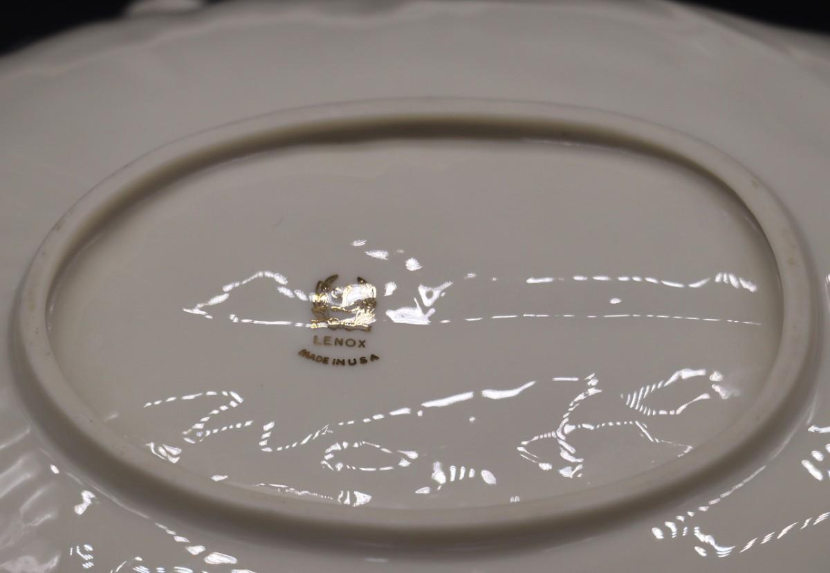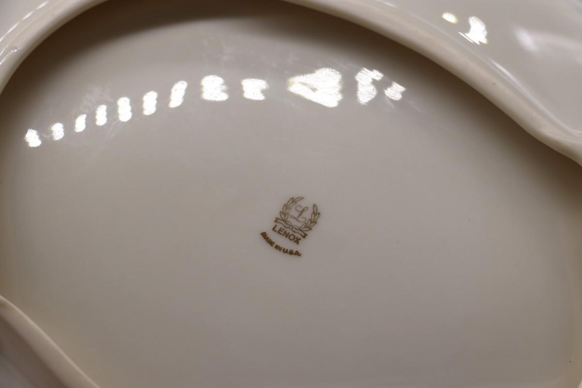 Lot of Cream White and Gold Lenox Serving Platters, Pitcher, and Vase. Good condition, as shown.