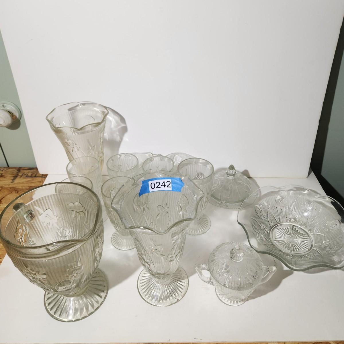 Lot of Jeannette Iris & Herringbone Depression Glass Bowls, Vases, Pitchter, Sugar Glasses and more