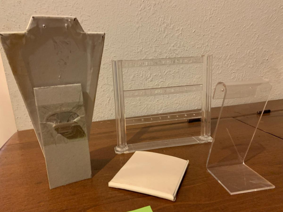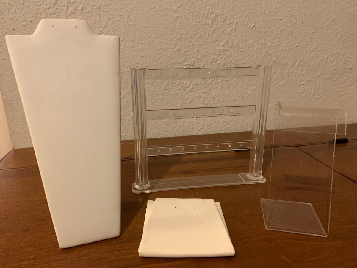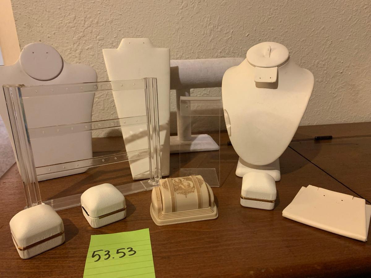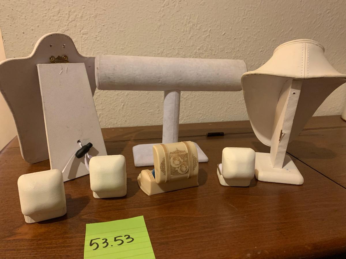 11 items total, all items have some imperfections, 2 clear displays, tallest display is 8" tall