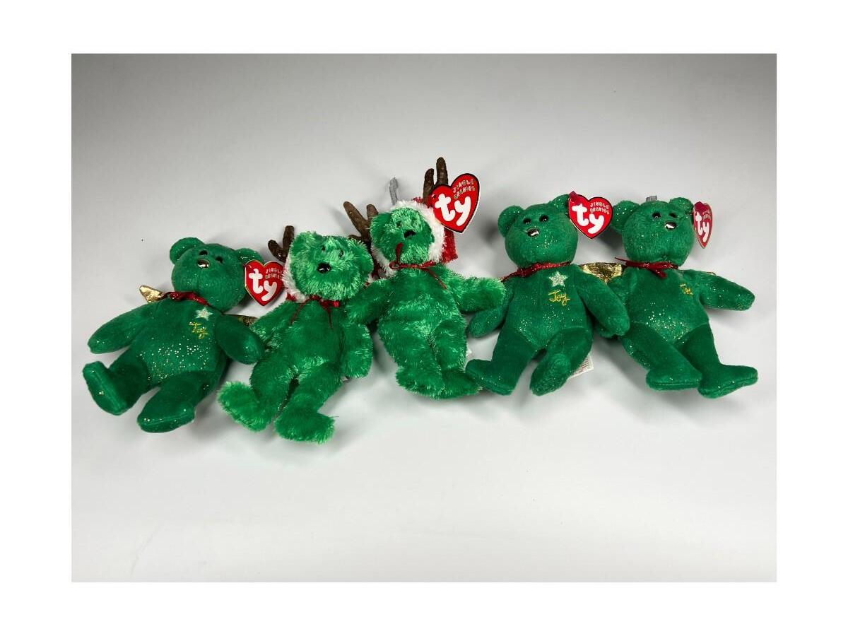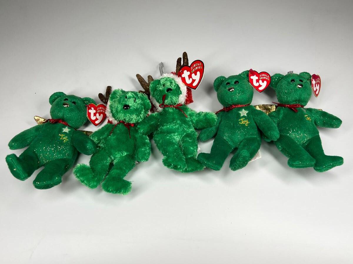 Lot of Jingle Beanie Baby Collection Green Holiday Christmas Teddy Bears with Tags