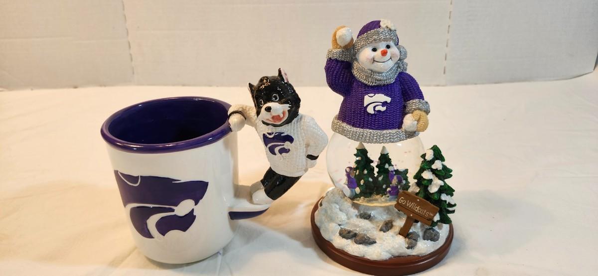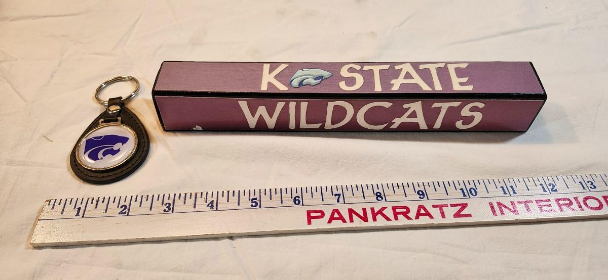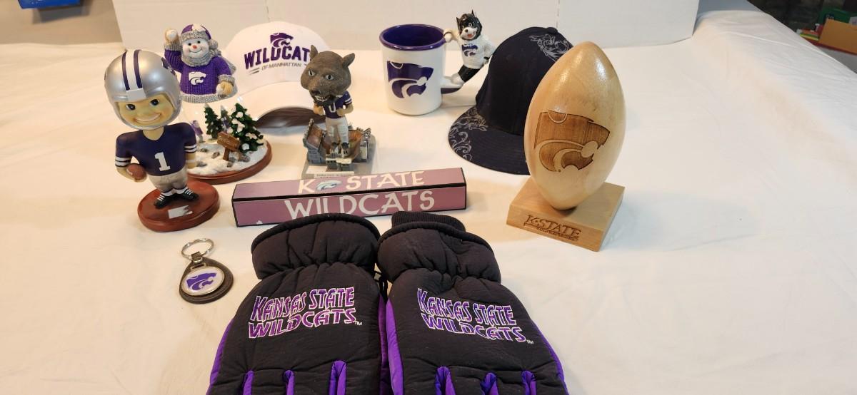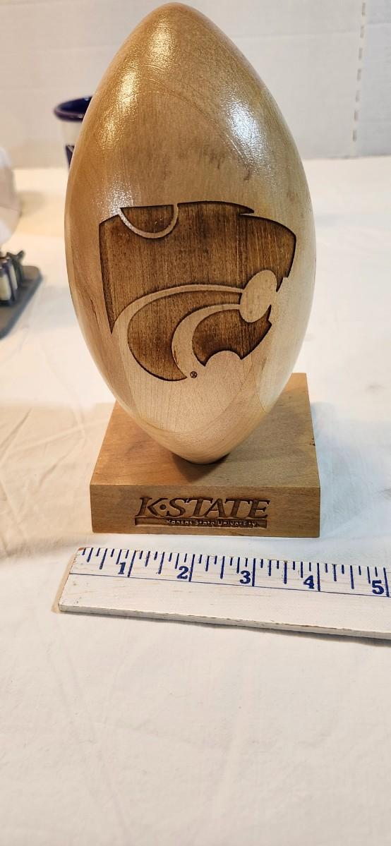 Lot of Kansas State Wildcats sport memorabilia with Wood Football Laser Engraved Bowling Pin Grid Works
