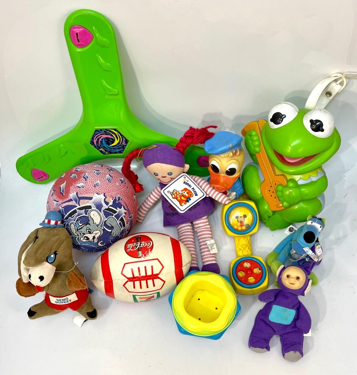 Lot of kids baby toys Kermit muppets, Chuck E Cheese, Donald Duck, and more