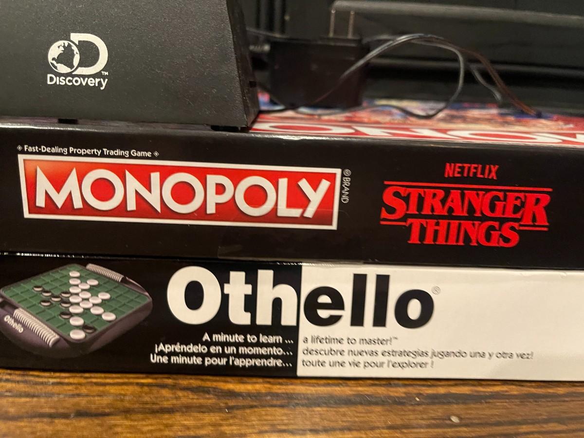 Features: Discovery Plasma ball (works), Monopoly Stranger Things board game and Othello (all pieces accounted for).