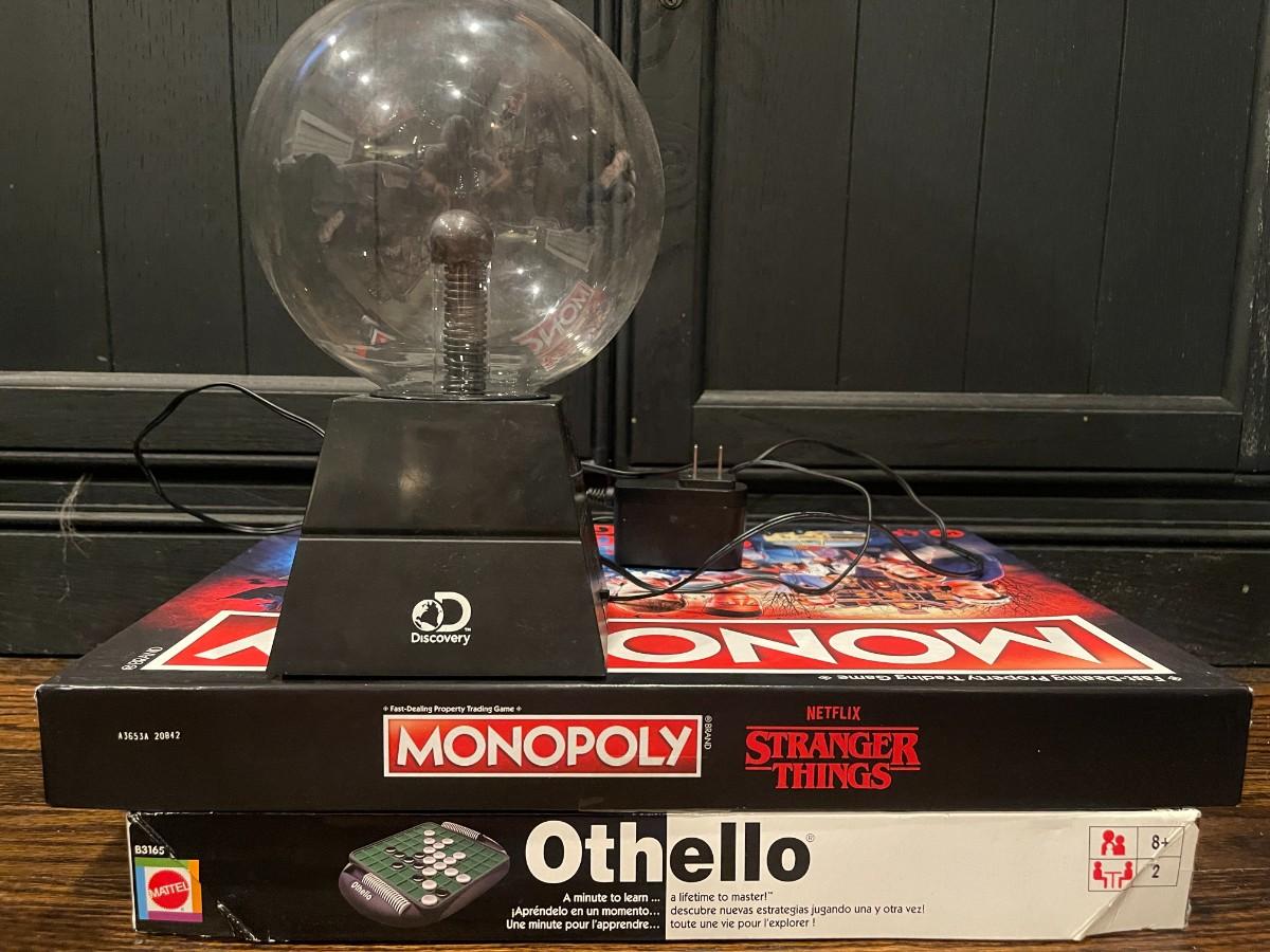 Features: Discovery Plasma ball (works), Monopoly Stranger Things board game and Othello (all pieces accounted for).