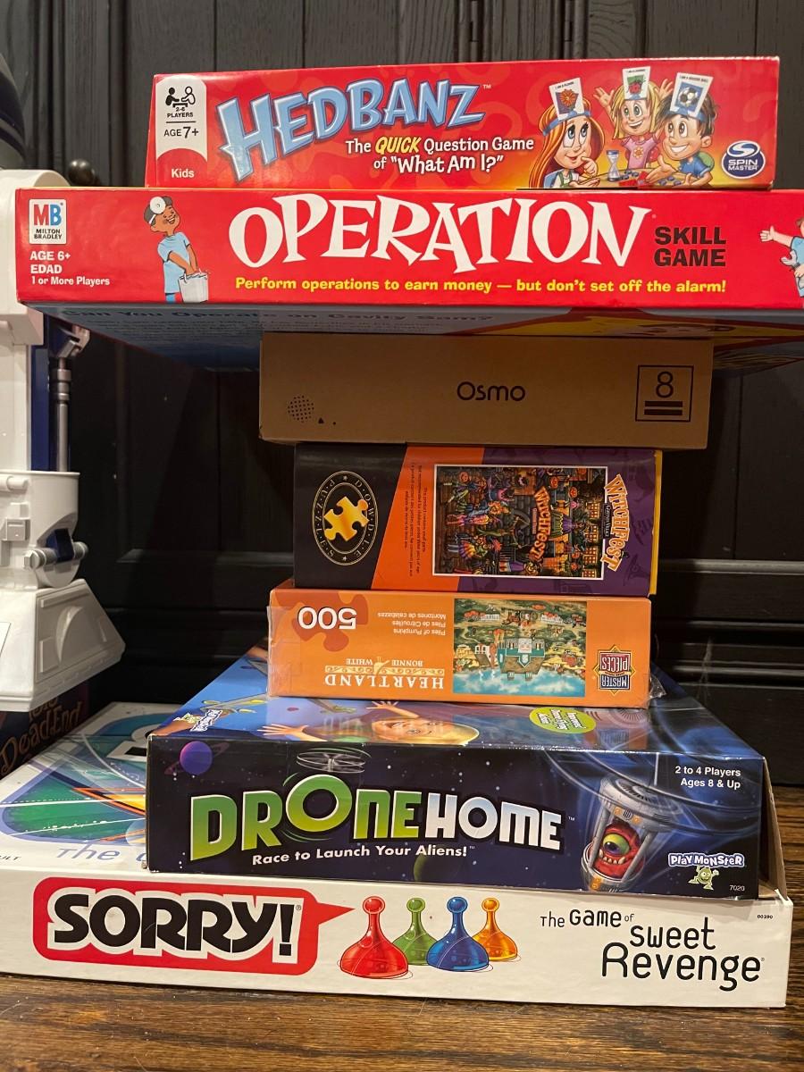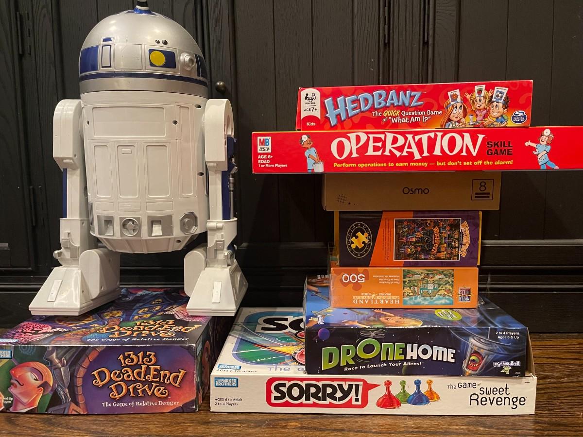 Lot of kids toys and games includes large R2D2, an Osmo game, 2 puzzles and 5 games.