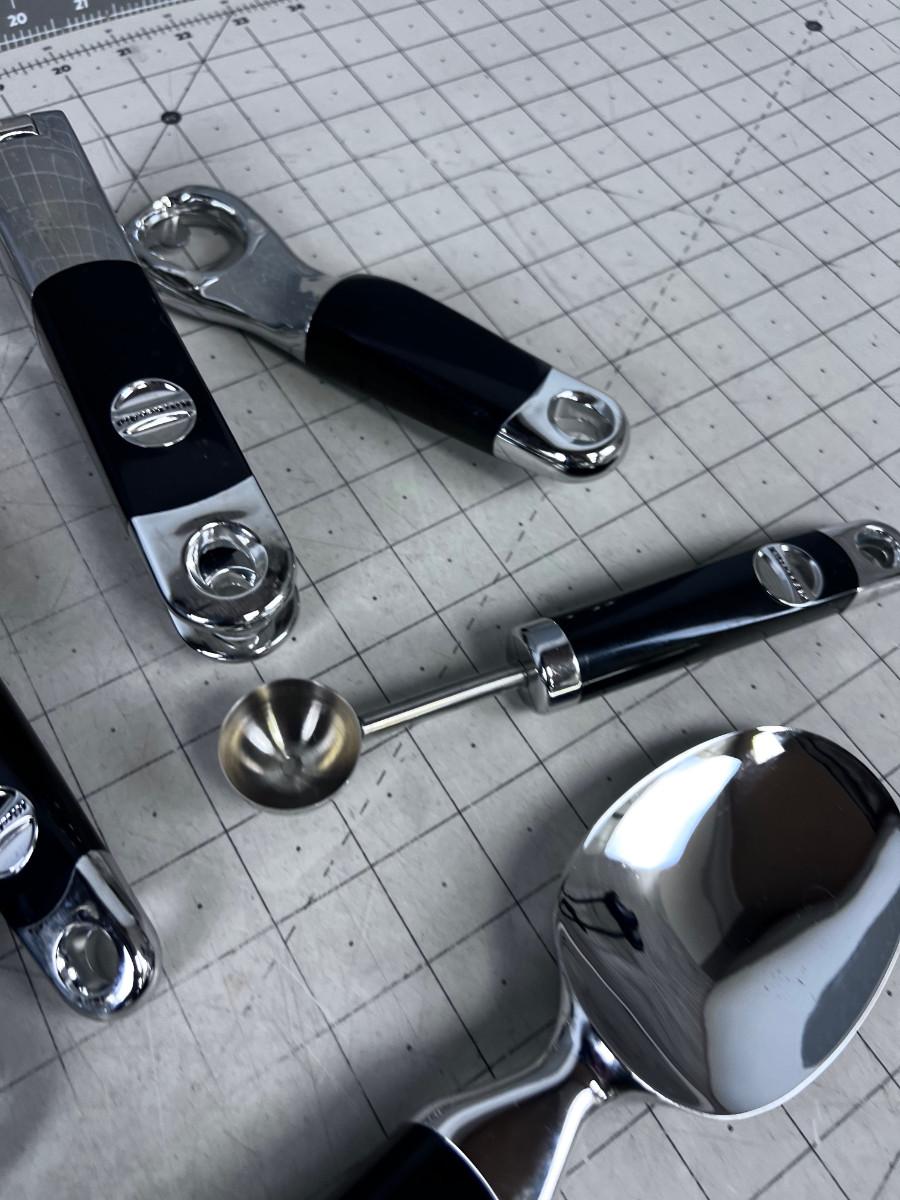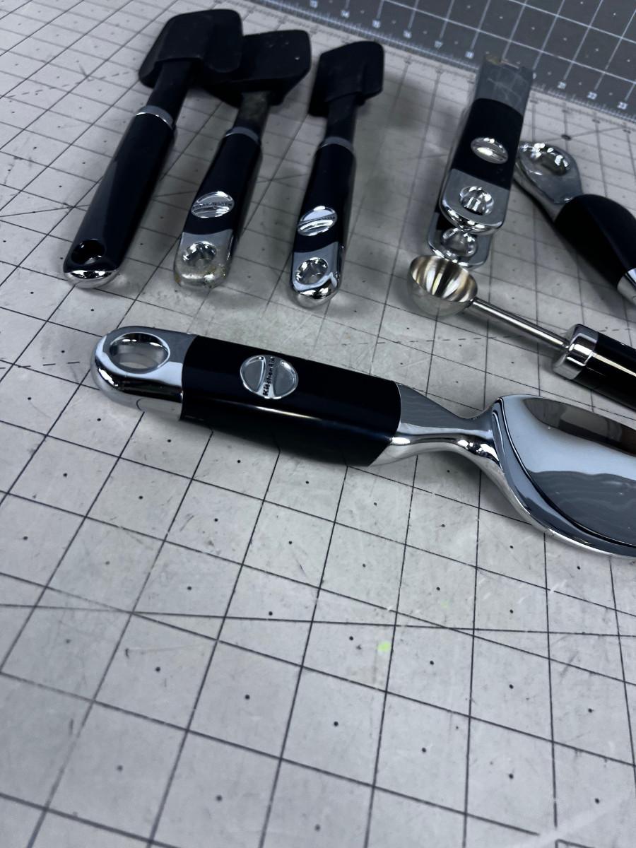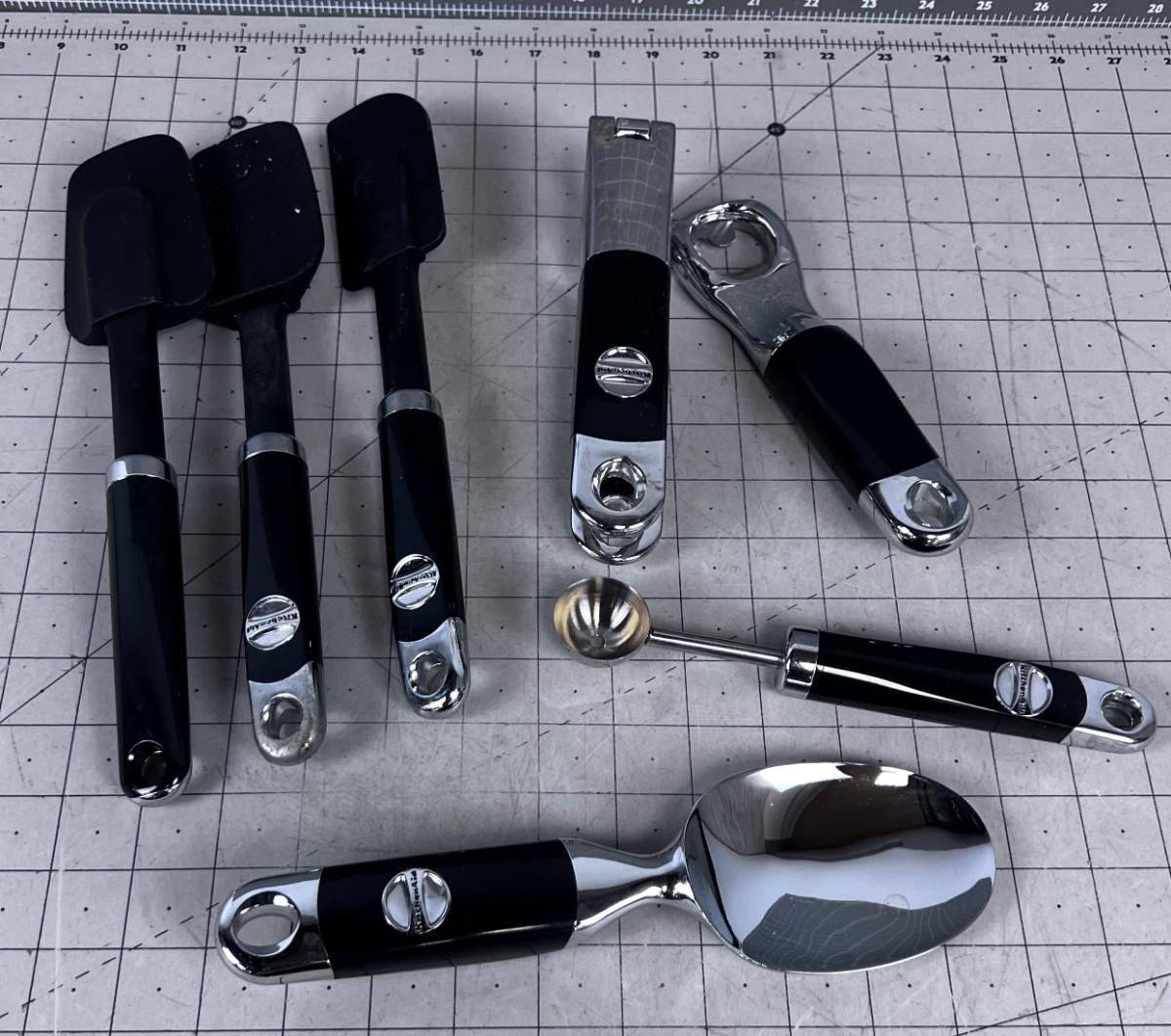 Lot of KITCHEN AID Utensils: Garlic Press, Scrappers, Melon Baller and Ice Cream Scope