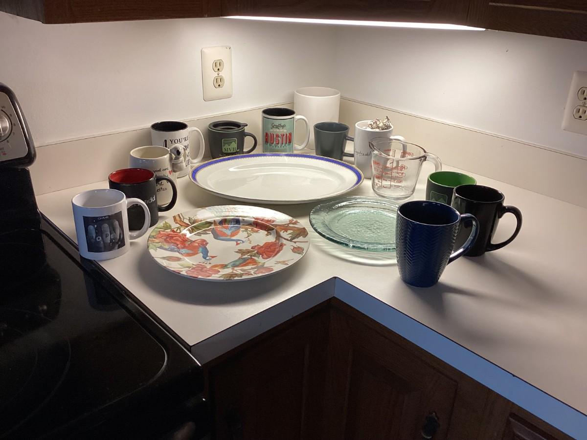Plates, Serving Platter, Mugs , Measuring cup etc.
