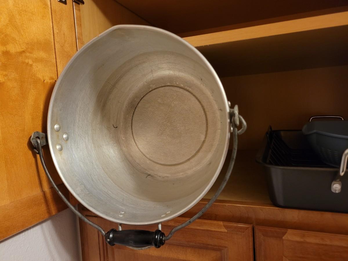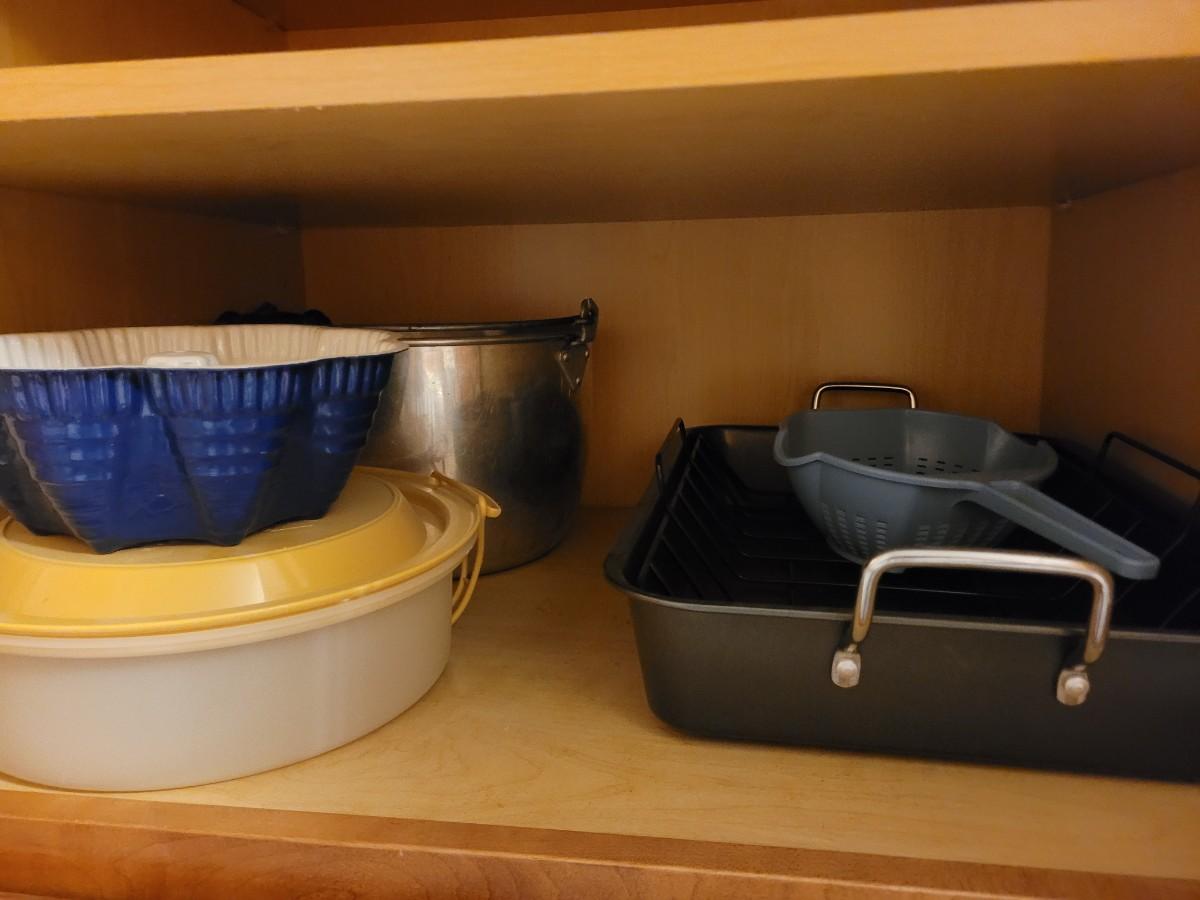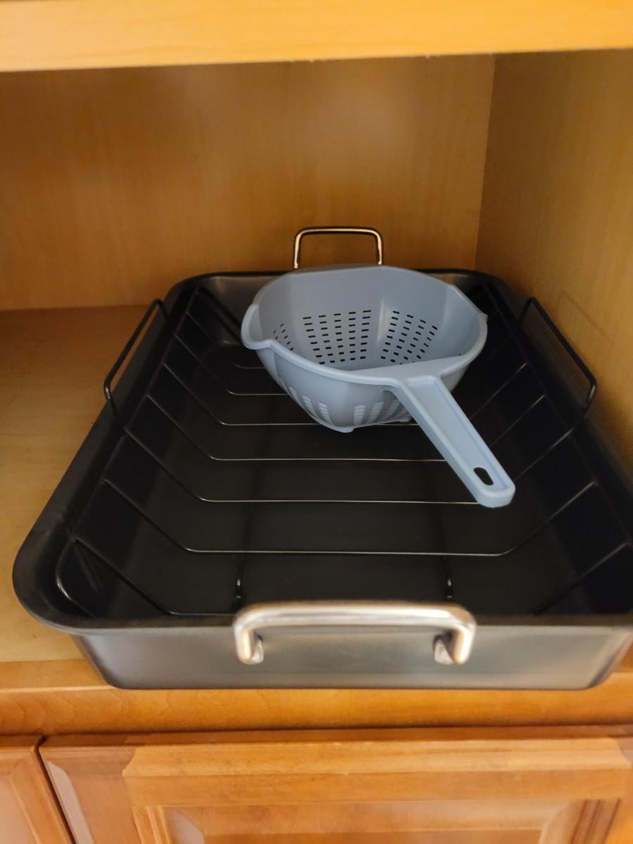 Big metal pot, cake or pie container, roasting pan, colander and form