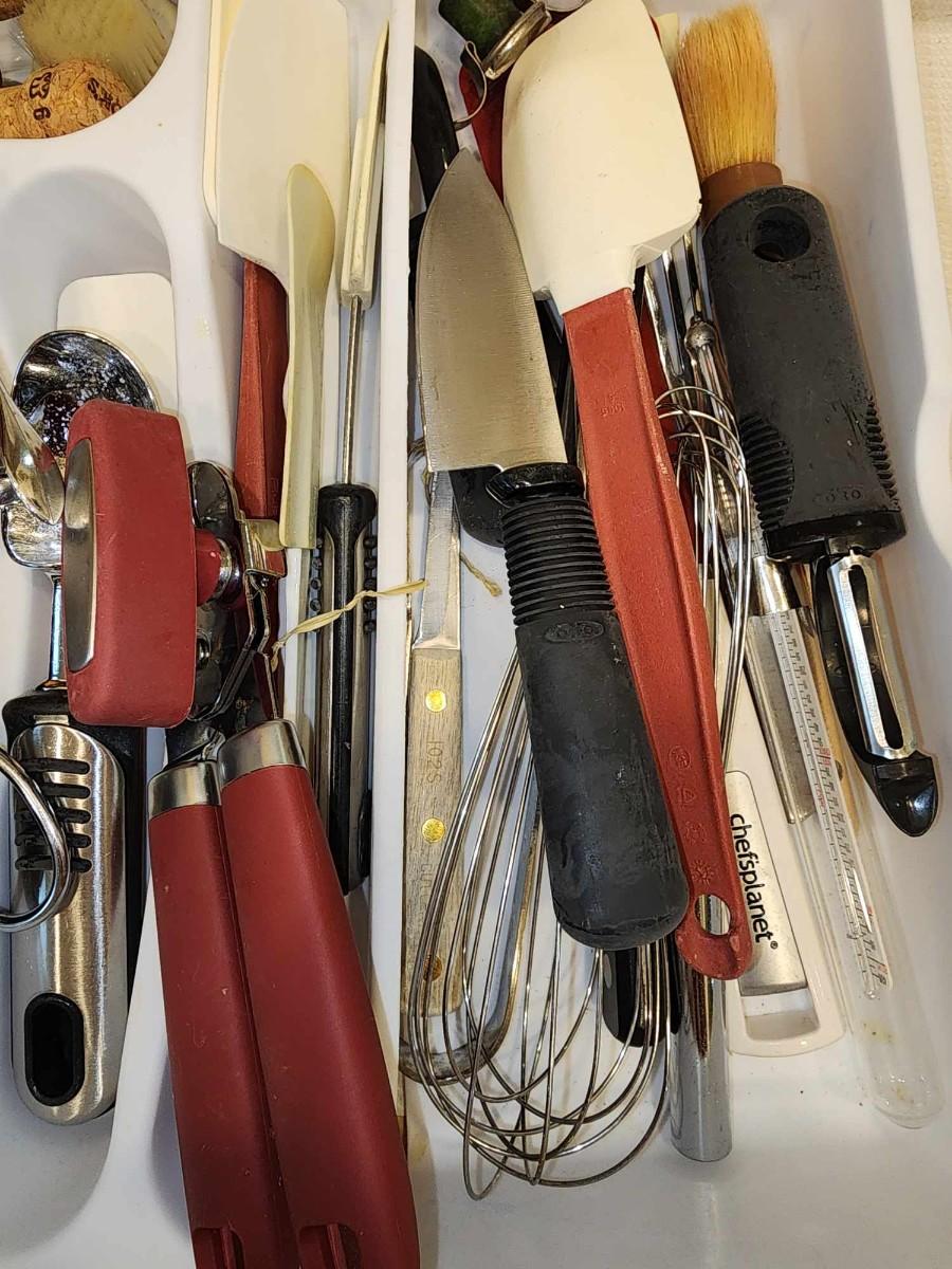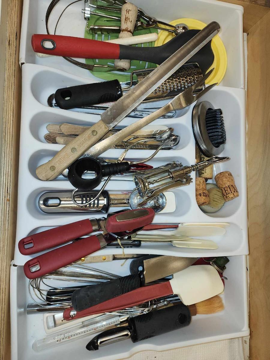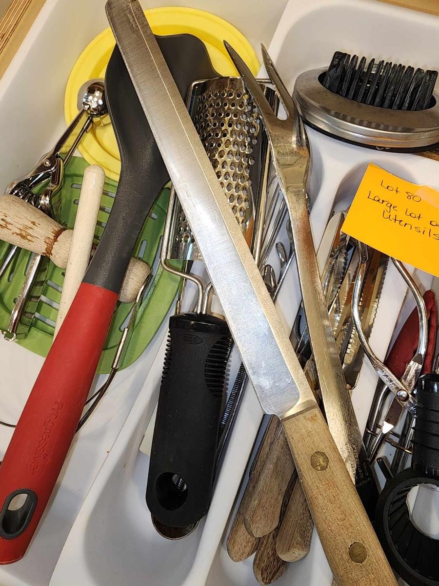 All for one price. Includes knives and grater, spoons, scoops and more.