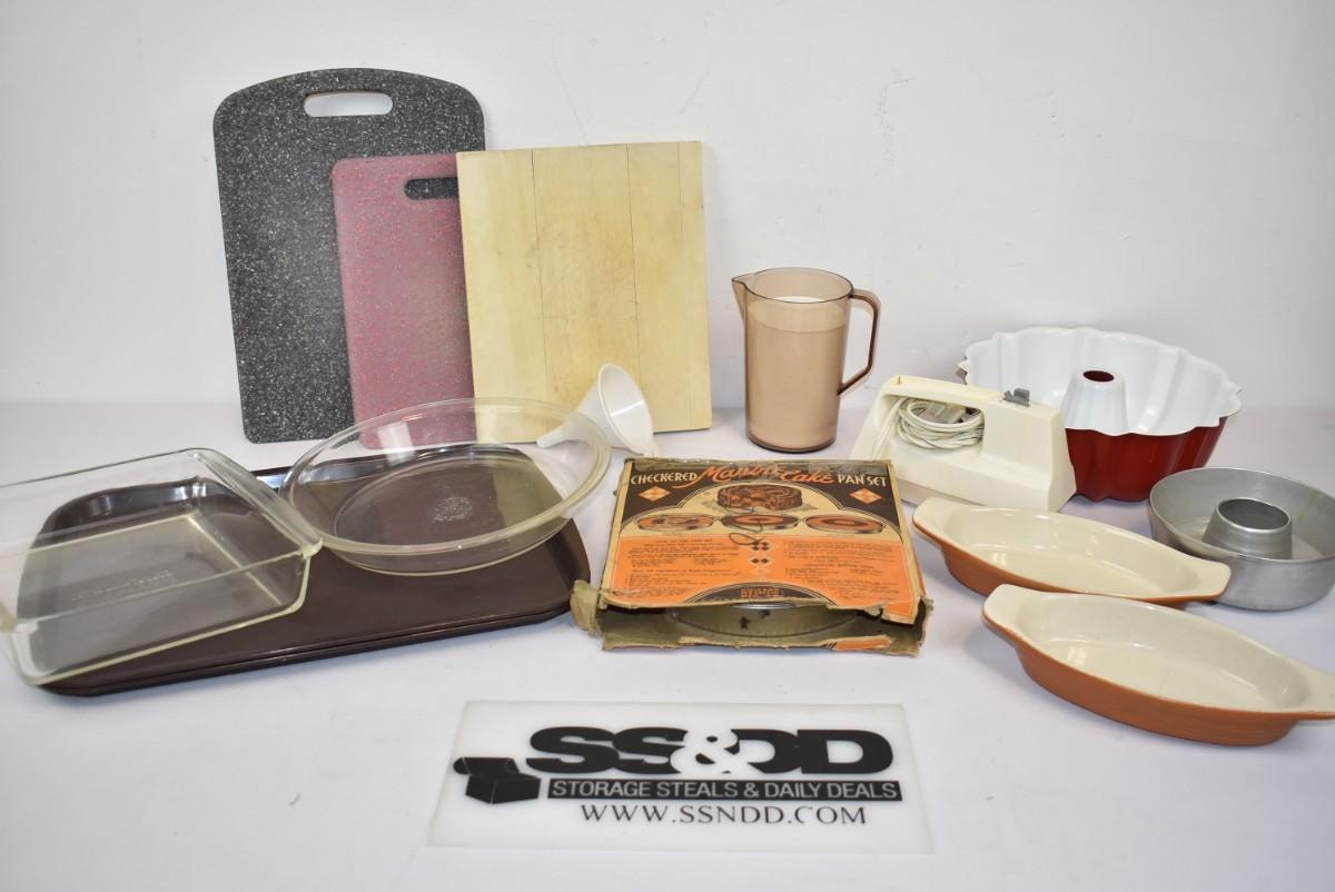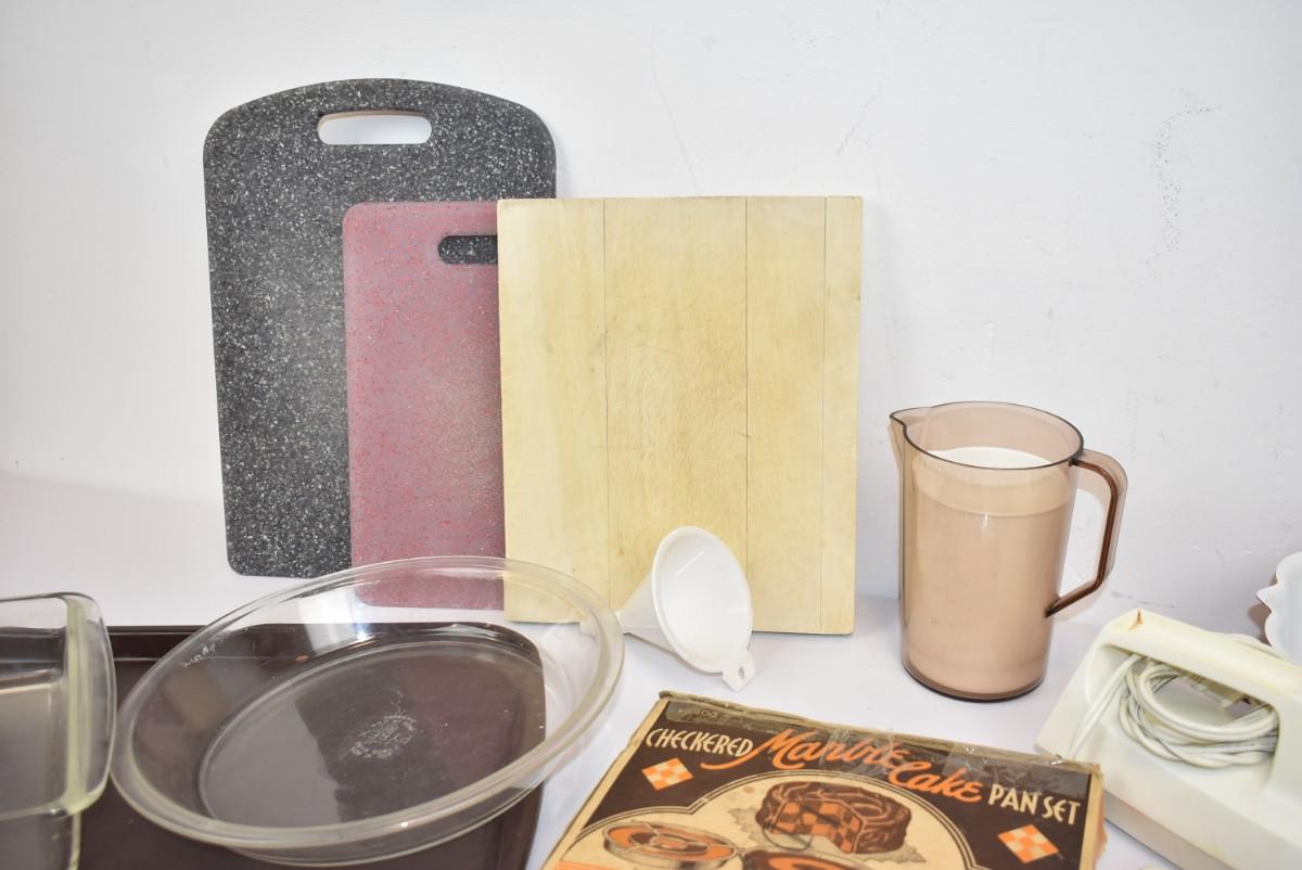 Lot of Kitchenware: Measuring Cups, Pans, Cutting Boards, etc