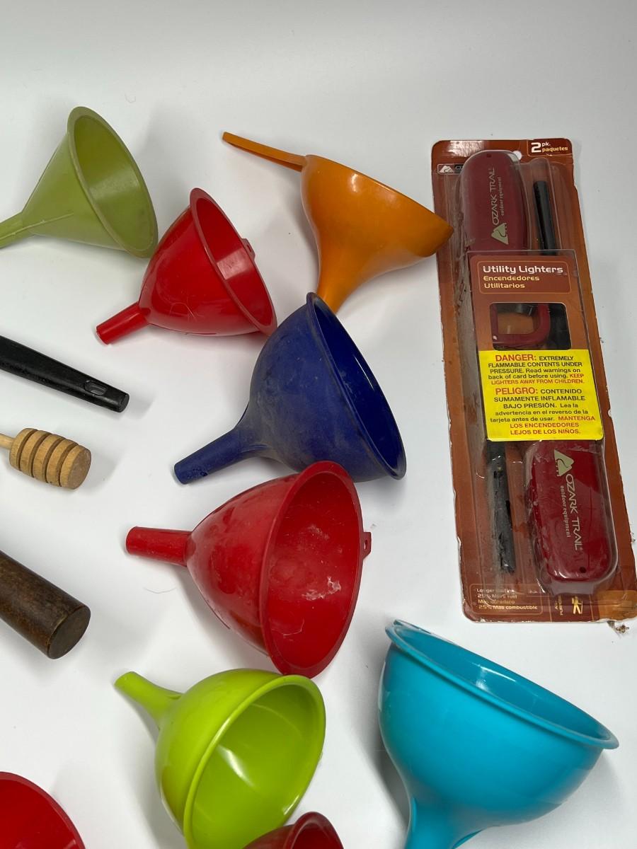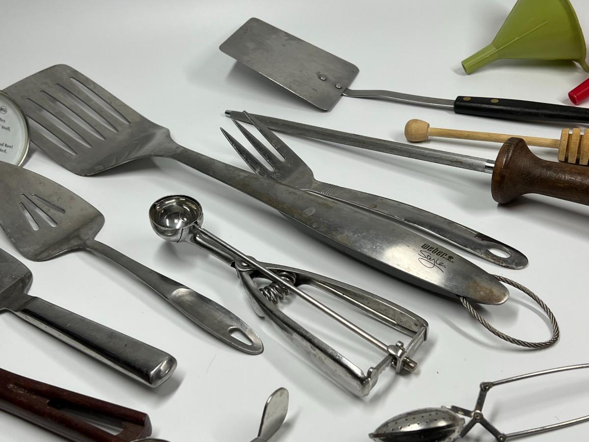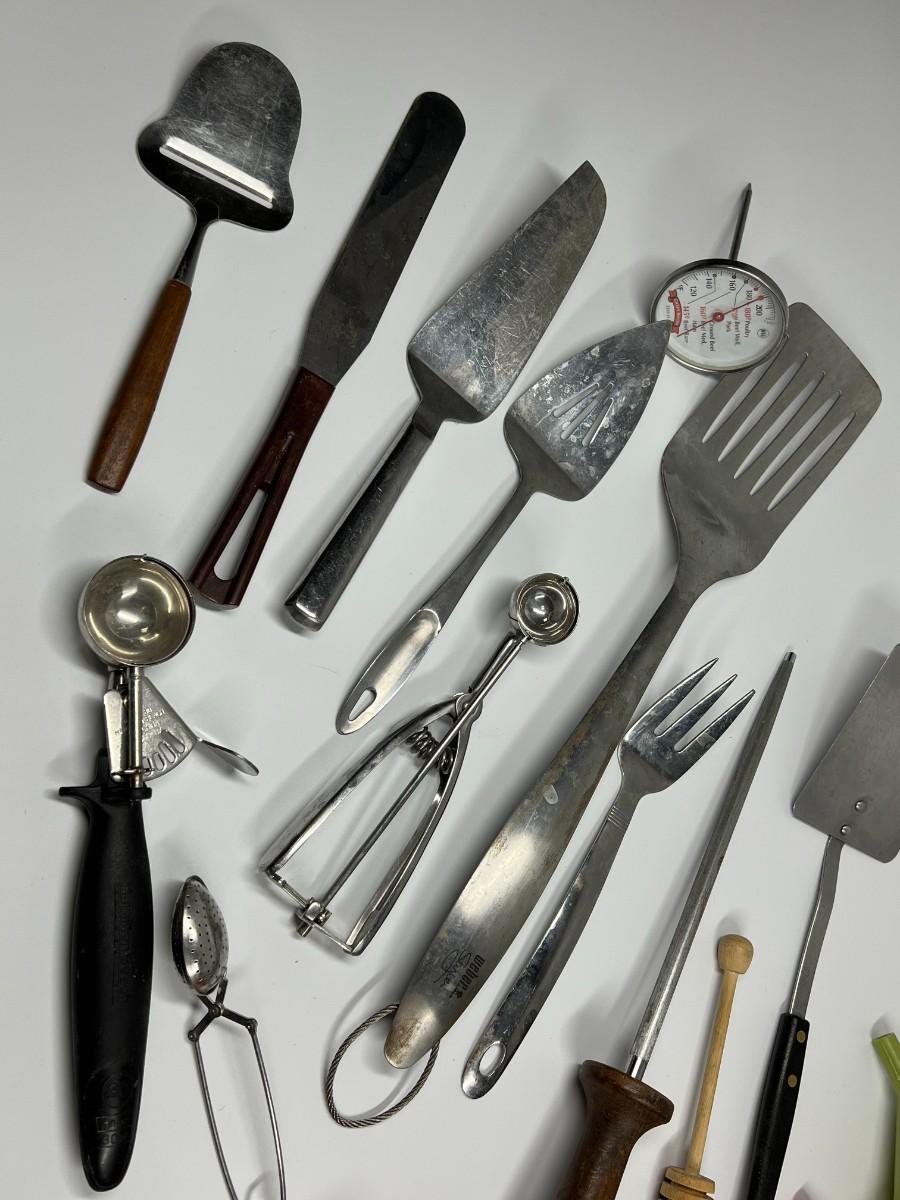 Lot of Kitchenware Utensils Spatulas, Funnels, Ice Cream Scoops & More