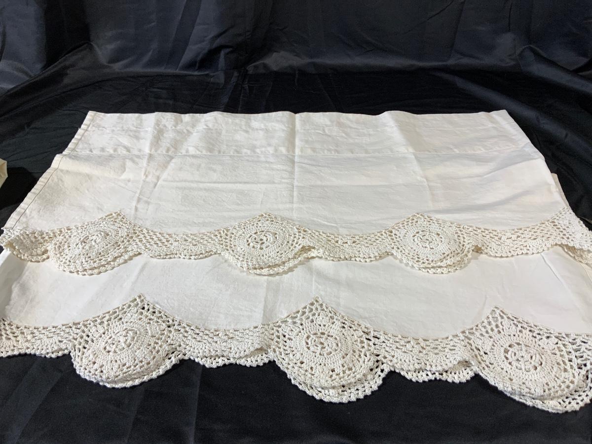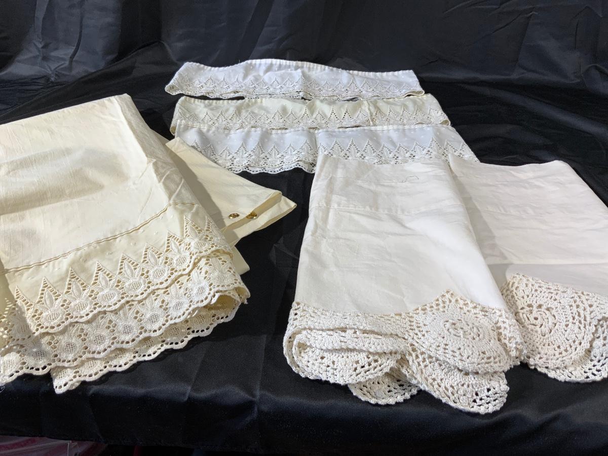 Lot of lace curtains, including a pair of valances. Also three pieces of lace.