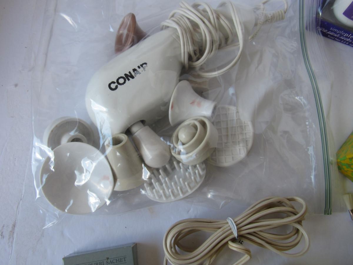 Massager, shaver, soft socks/lotion, appear to be in good used shape. Shipping is available at actual shipping cost plus $5.00 handling fee per box for supplies/labor. See our terms for details. All sales are final. Condition notes may not be all inclusive, we may miss some issues as most vintage items are not in mint condition and have some degree of wear, paint loss, etc, but we always try to note obvious damage.