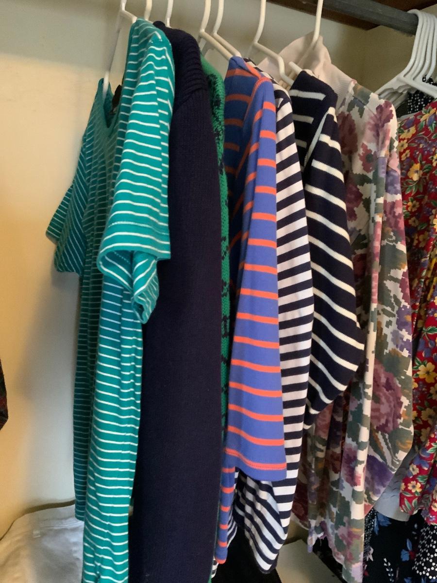 Lot of Ladies colorful clothing sizes S, M, L, PS, PM Talbots and LL Bean to name a few. 26 items in this lot, Lot also has 2 dresses, some jackets and sweaters. Long and short sleeve. Please note, the previous owner was very petite and this clothing is likely on the petite side.