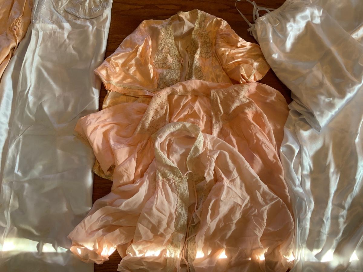 Lot of ladies Silk Pajamas. Sized Small to Medium. some vintage pieces. 1 White top and bottom sized Medium.