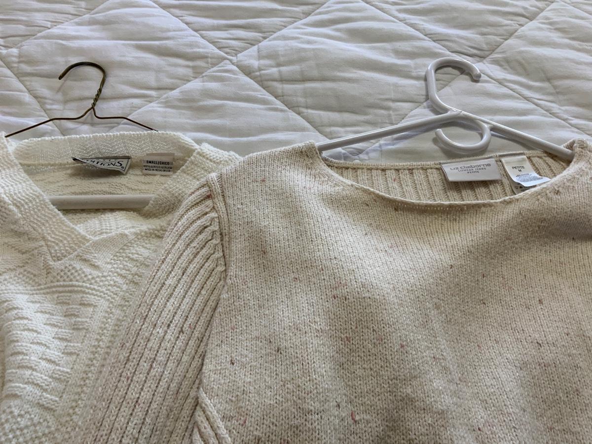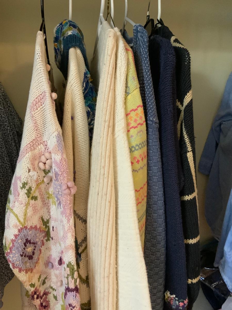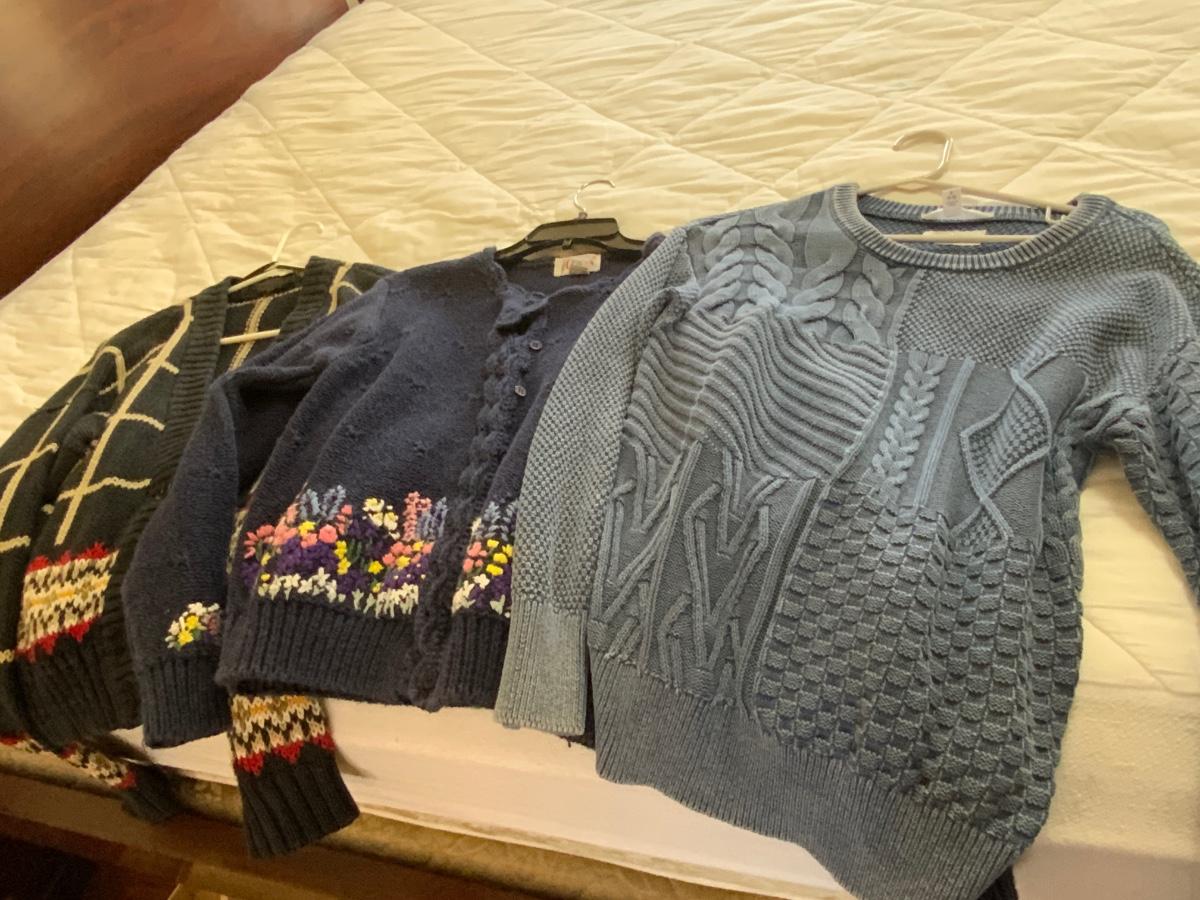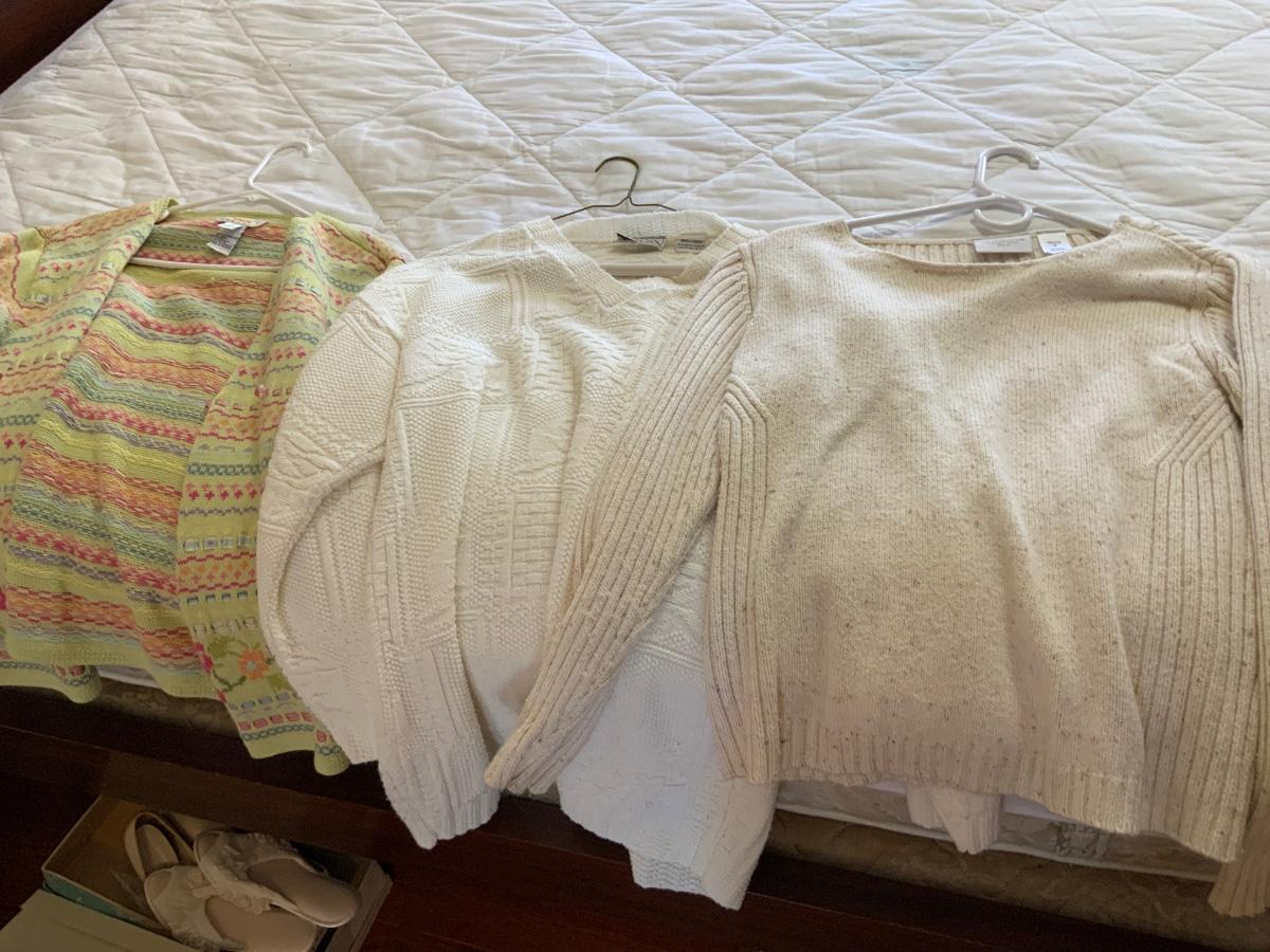 Lot of Quality Ladies Sweaters sizes Small thru Large. Also Petite. Name Brand. Hand knitted by Jennifer Reed, Hunters Run to name a few.