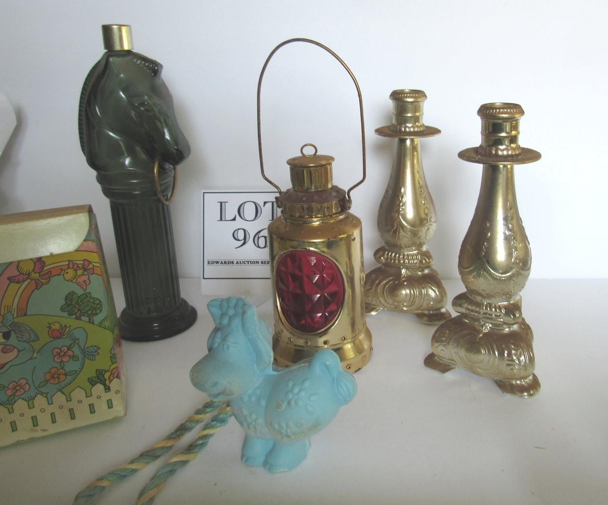Lot of Large Avon Bottles and Soap on Rope Cow