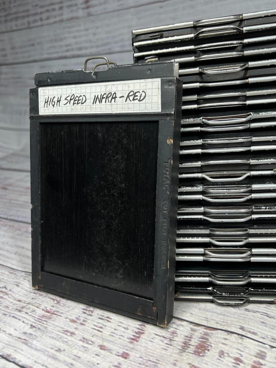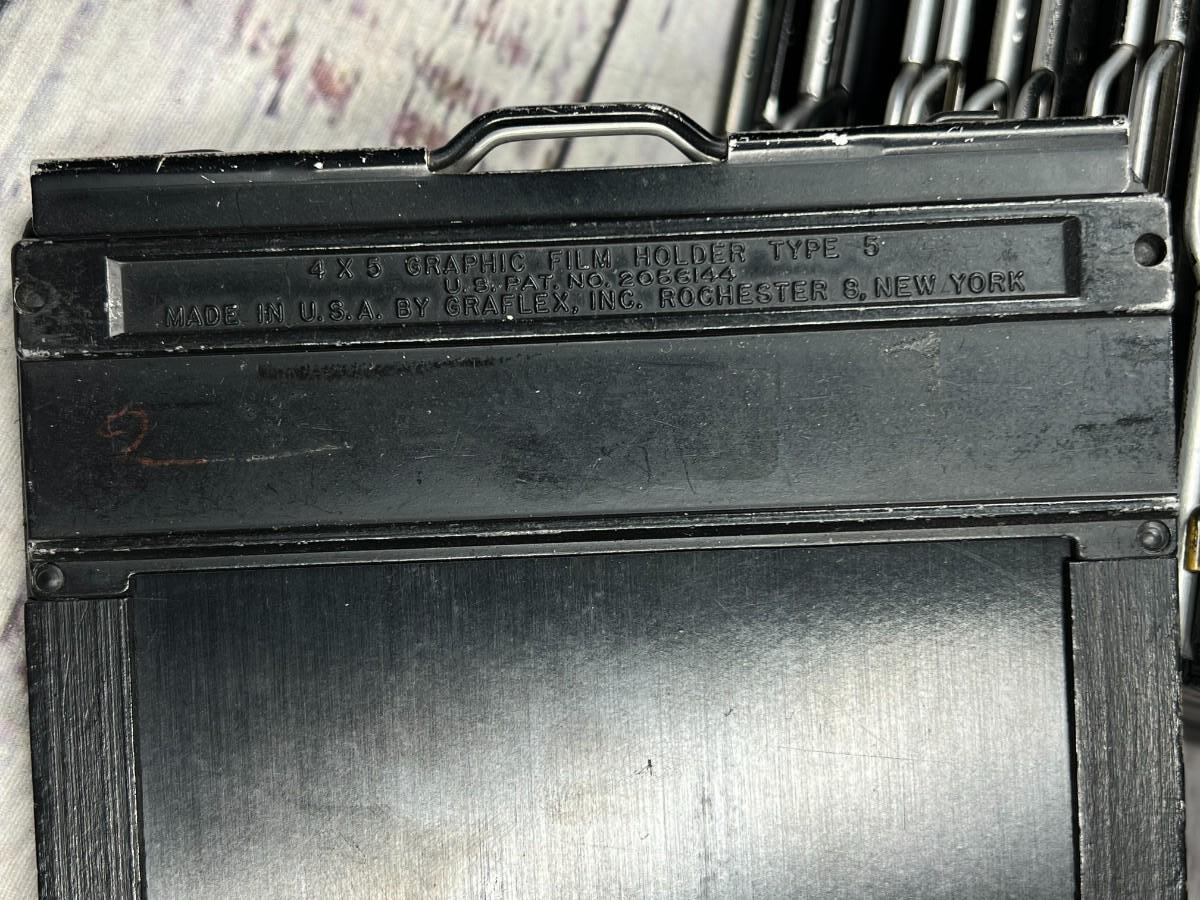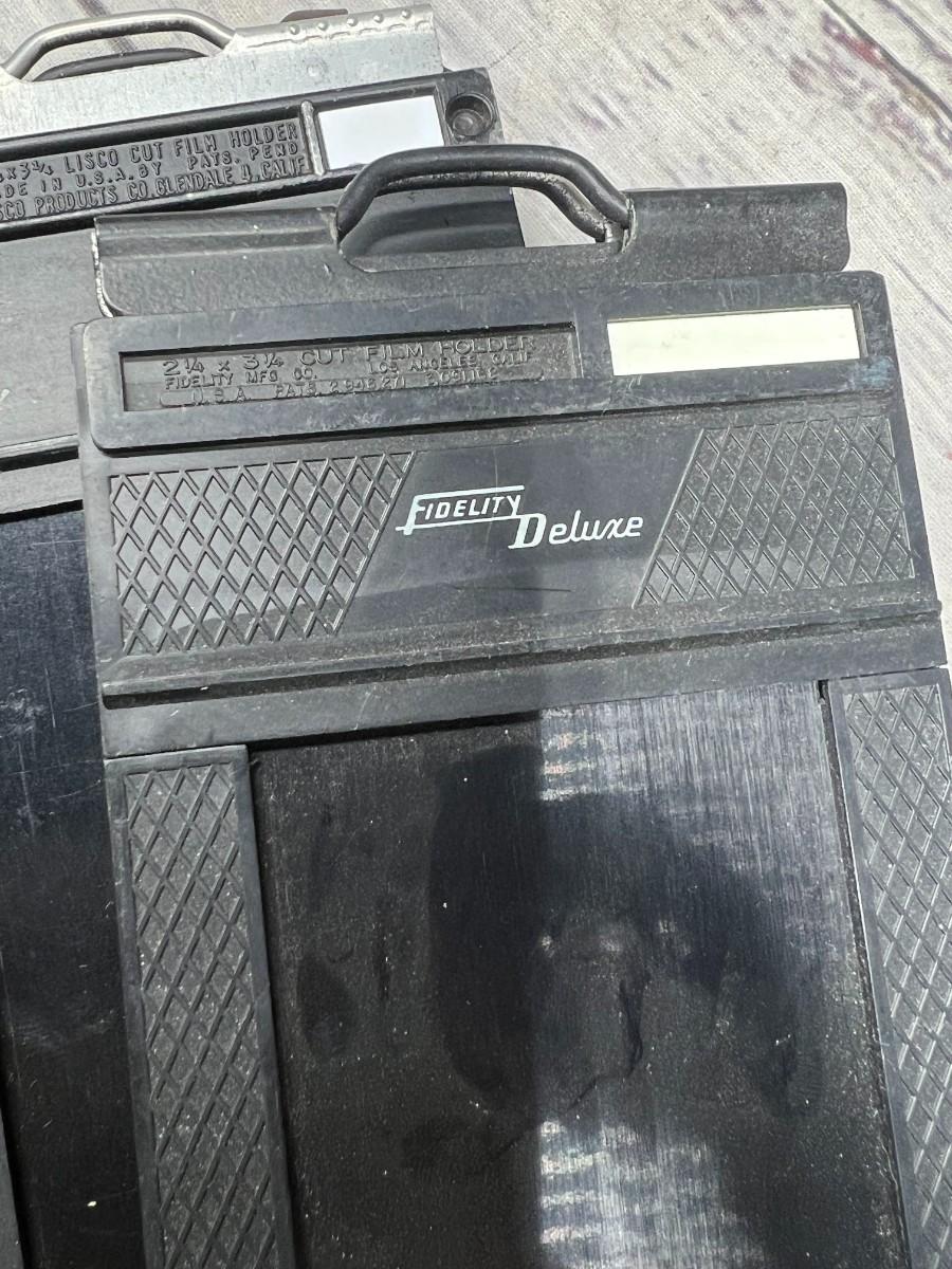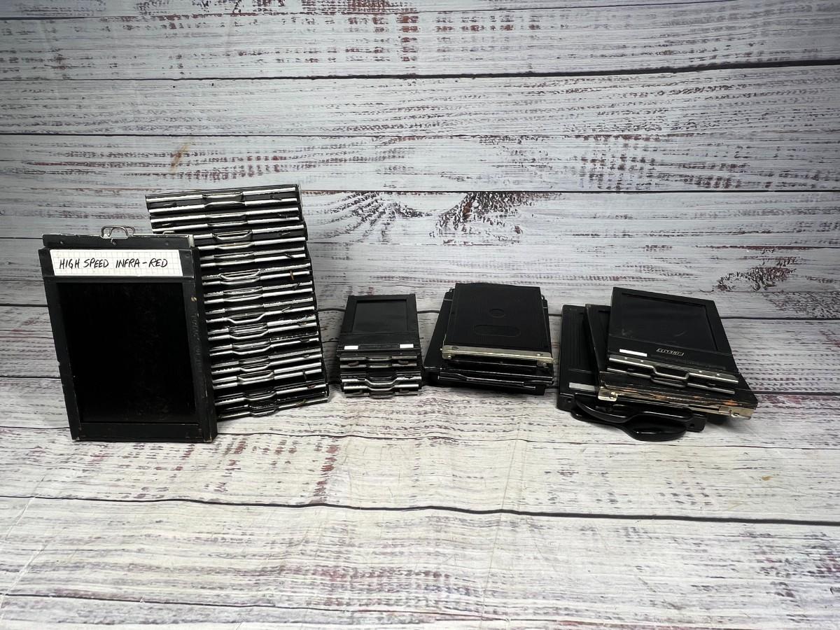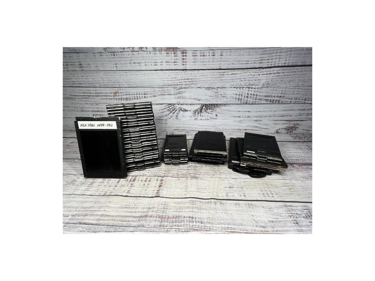 Lot of Large Format Film Kodak, Graflex, Fidelity Deluxe Film Adapters & Film Holders, there is no significant damage to the film adapters & holders and is in overall good vintage condition. Check pictures for more details and for sizing.